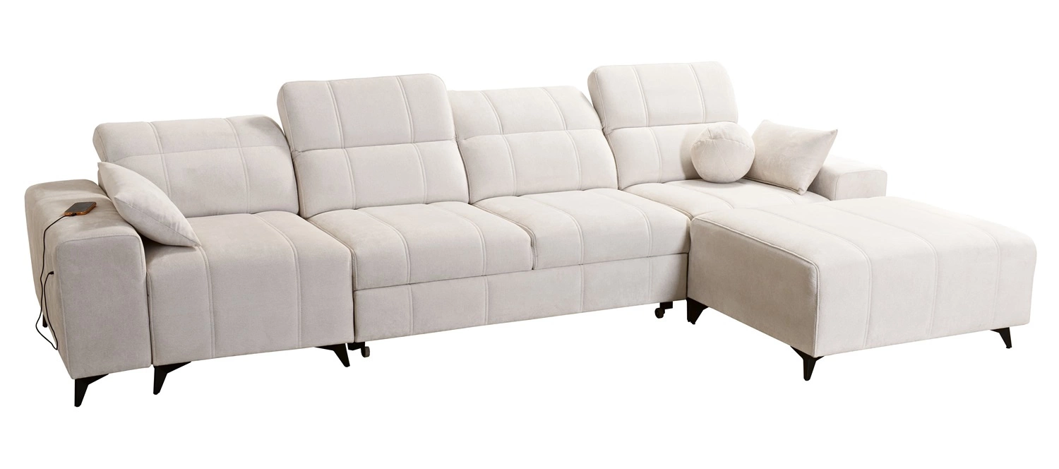 Mezi doplňky tohoto nábytku, které ocení všichni uživatelé, patří kontejnery na lůžkoviny, funkce spaní a nabíjecí zásuvka USB na boku rohové skříně.