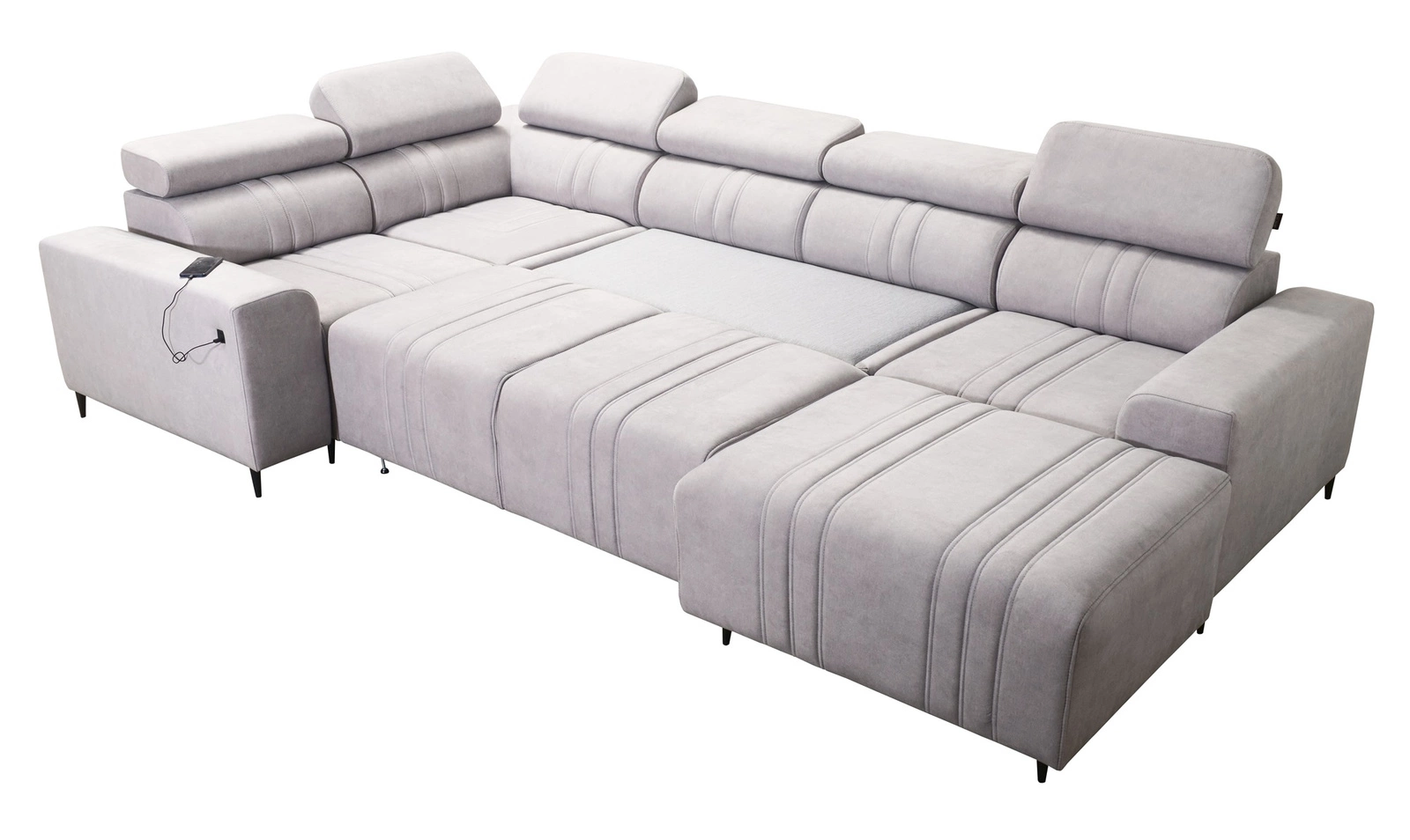 Mezi doplňky tohoto nábytku, které ocení všichni uživatelé, patří kontejnery na lůžkoviny, nastavitelné opěrky hlavy a nabíjecí zásuvka USB na boku rohové skříně.