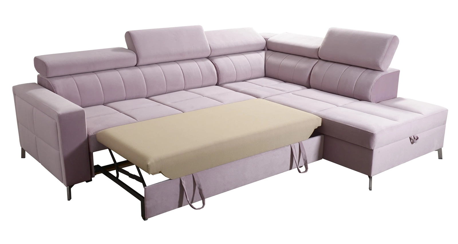 Podrobnosti o moderní rohové pohovce s funkcí spaní Nausa III