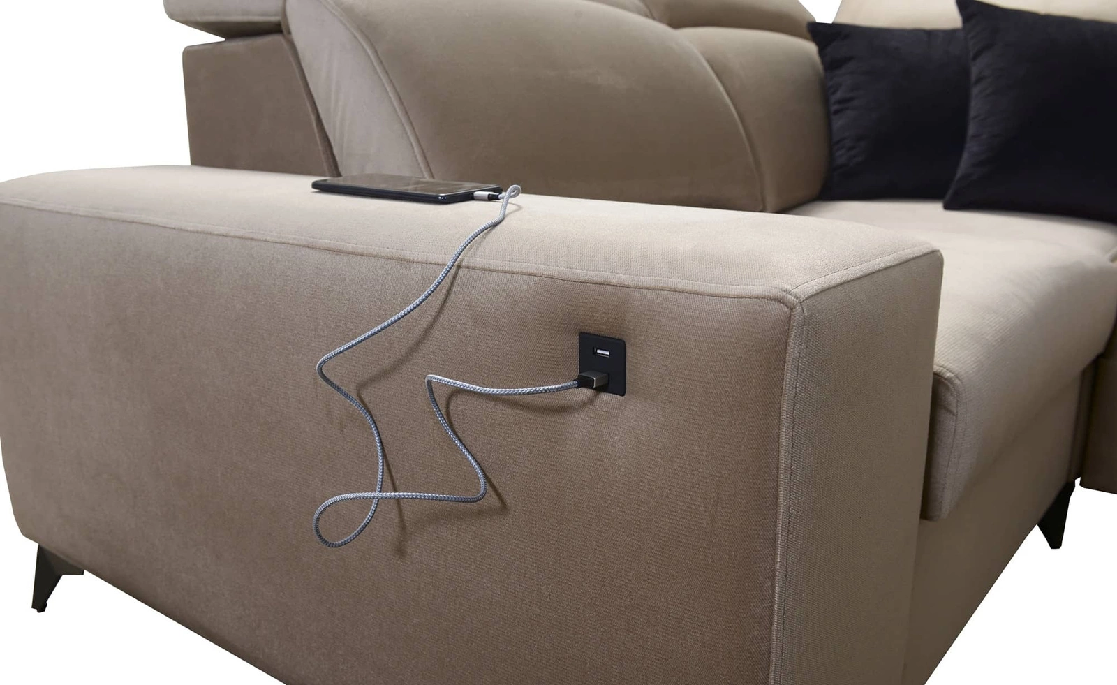 Mezi další funkce tohoto nábytku, které ocení všichni uživatelé, patří kontejner na lůžkoviny, funkce spaní, USB zásuvka v boční části rohu pro nabíjení telefonu a dalších multimediálních zařízení.