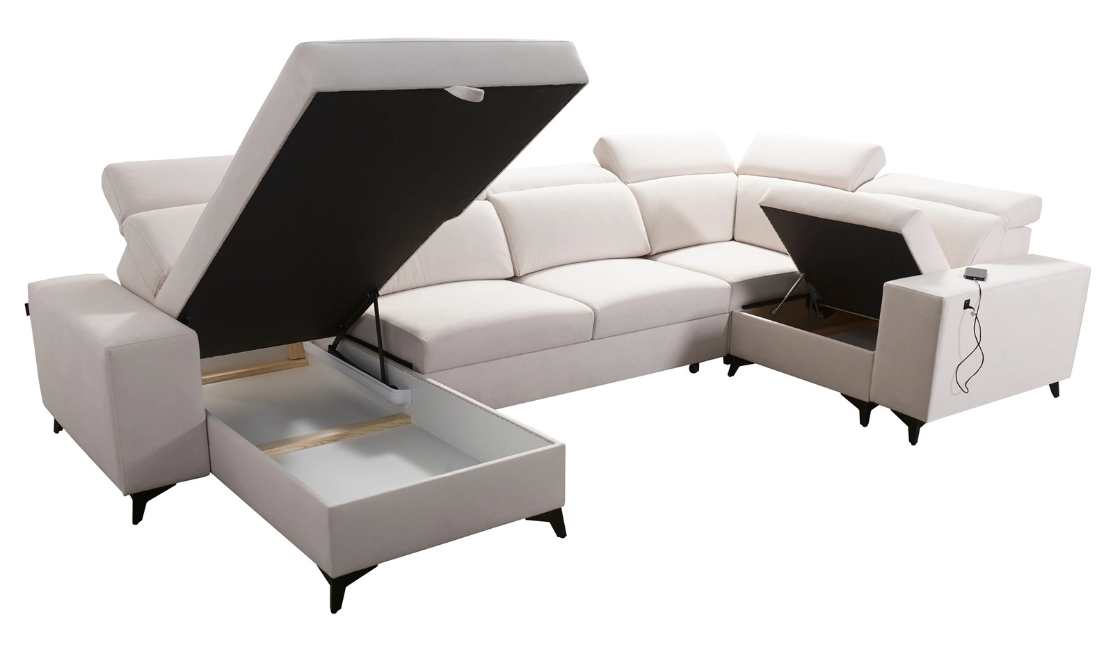 Mezi další vlastnosti tohoto nábytku, které ocení všichni uživatelé, patří kontejnery na lůžkoviny, funkce spaní, zásuvka USB v boční části rohu pro nabíjení telefonu a dalších multimediálních zařízení.