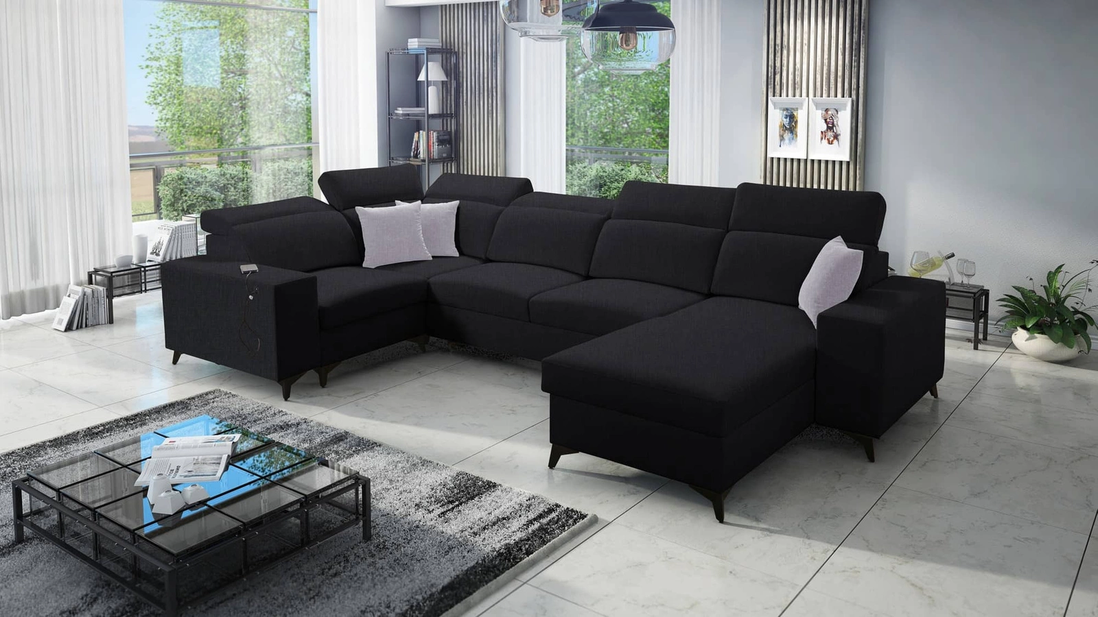 Elegantní rohová pohovka Kelly IV v černé barvě s nastavitelnými opěrkami hlavy je receptem na moderní interiér vašeho domova.