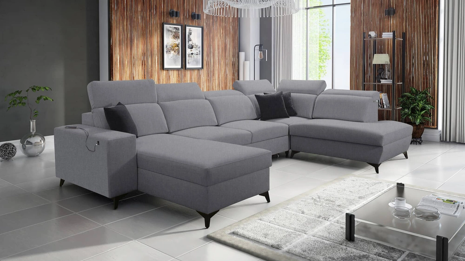 Elegantní rohová pohovka Kelly VI v šedé barvě s nastavitelnými opěrkami hlavy je receptem na moderní interiér vašeho domova.