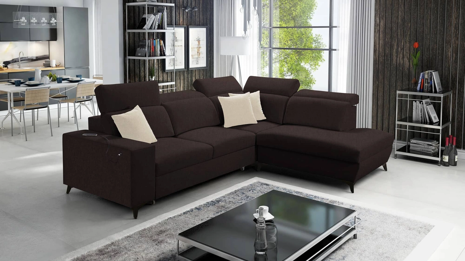 Elegantní rohová pohovka Kelly VII v hnědé barvě s nastavitelnými opěrkami hlavy je receptem na moderní interiér vašeho domova!