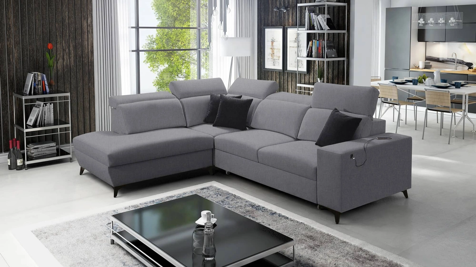 Elegantní rohová pohovka Kelly VII v šedé barvě s nastavitelnými opěrkami hlavy je receptem na moderní interiér vašeho domova!