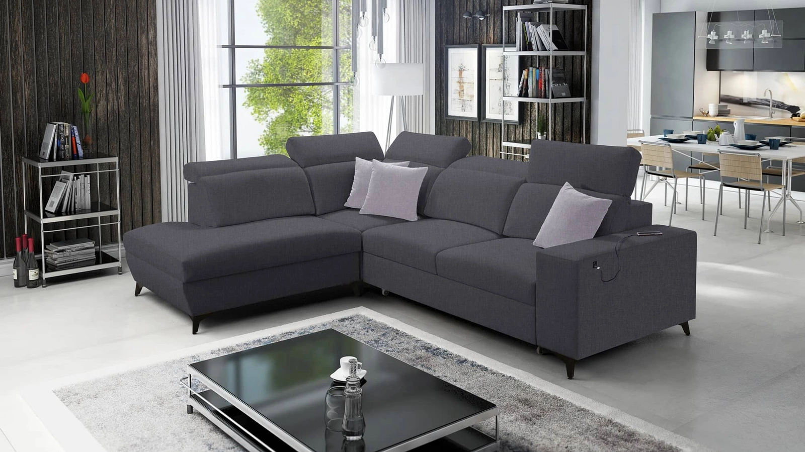 Mezi další funkce tohoto nábytku, které ocení všichni uživatelé, patří kontejner na lůžkoviny, funkce spaní, USB zásuvka v boční části rohu pro nabíjení telefonu a dalších multimediálních zařízení.