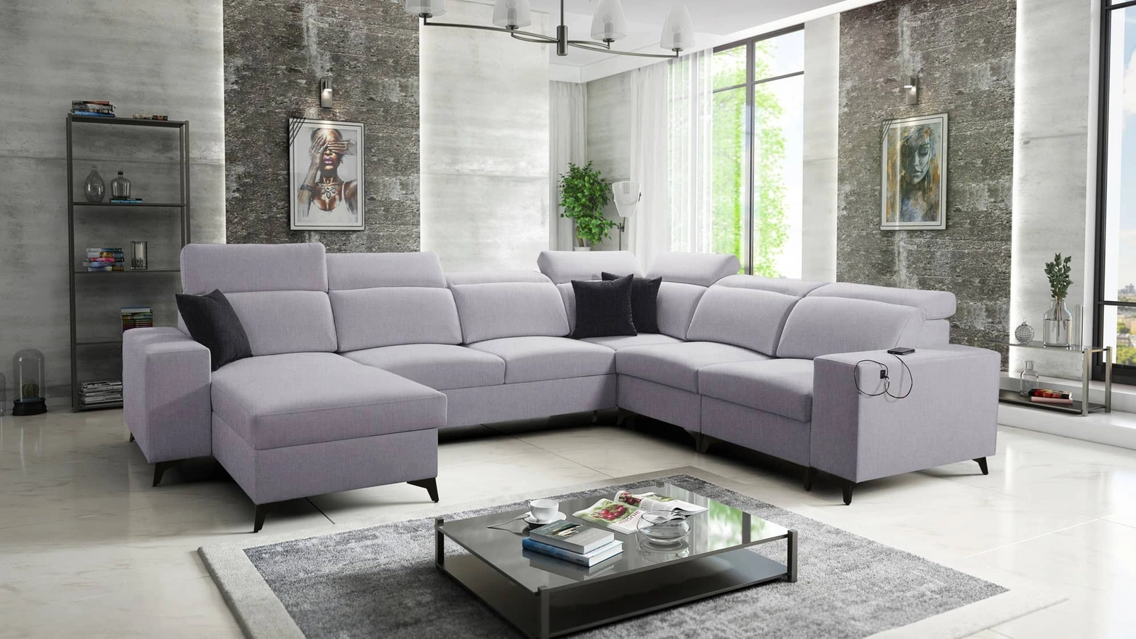 Elegantní rohová pohovka Kelly VIII v šedém jasanu s nastavitelnými opěrkami hlavy je receptem na moderní interiér vašeho domova.