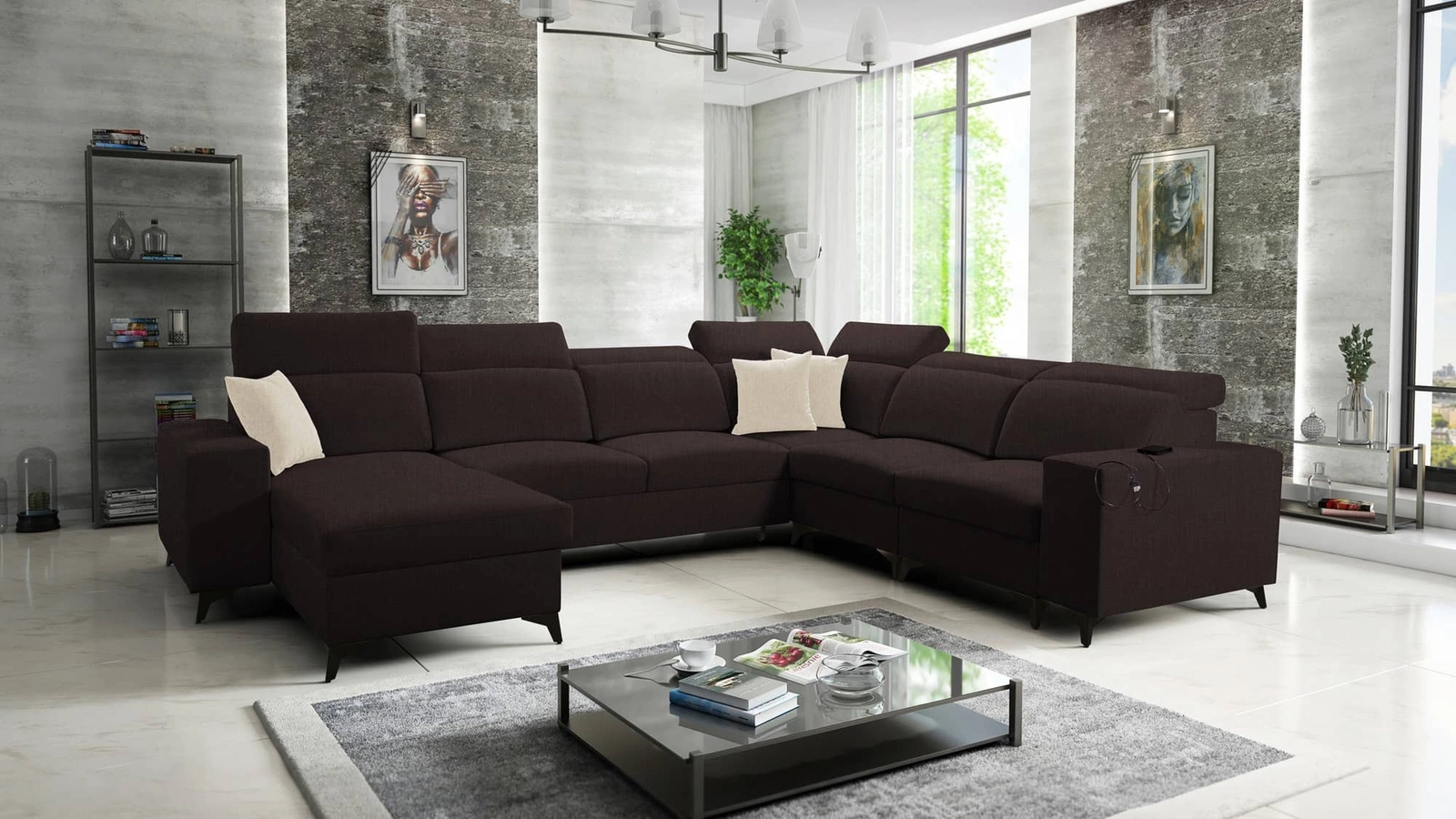 Elegantní rohová pohovka Kelly VIII v hnědé barvě s nastavitelnými opěrkami hlavy je receptem na moderní interiér vašeho domova.