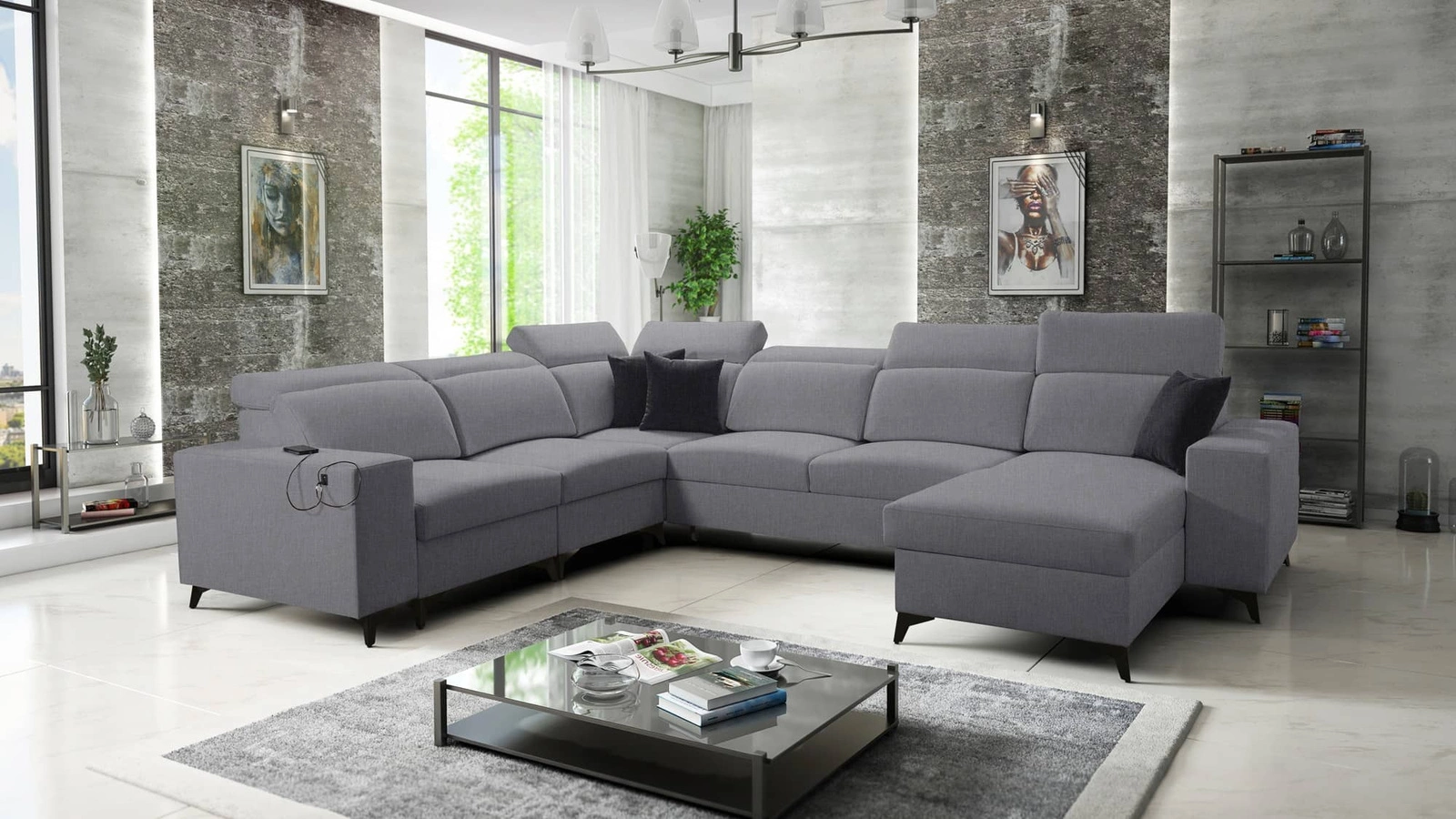 Elegantní rohová pohovka Kelly VIII v šedé barvě s nastavitelnými opěrkami hlavy je receptem na moderní interiér vašeho domova.