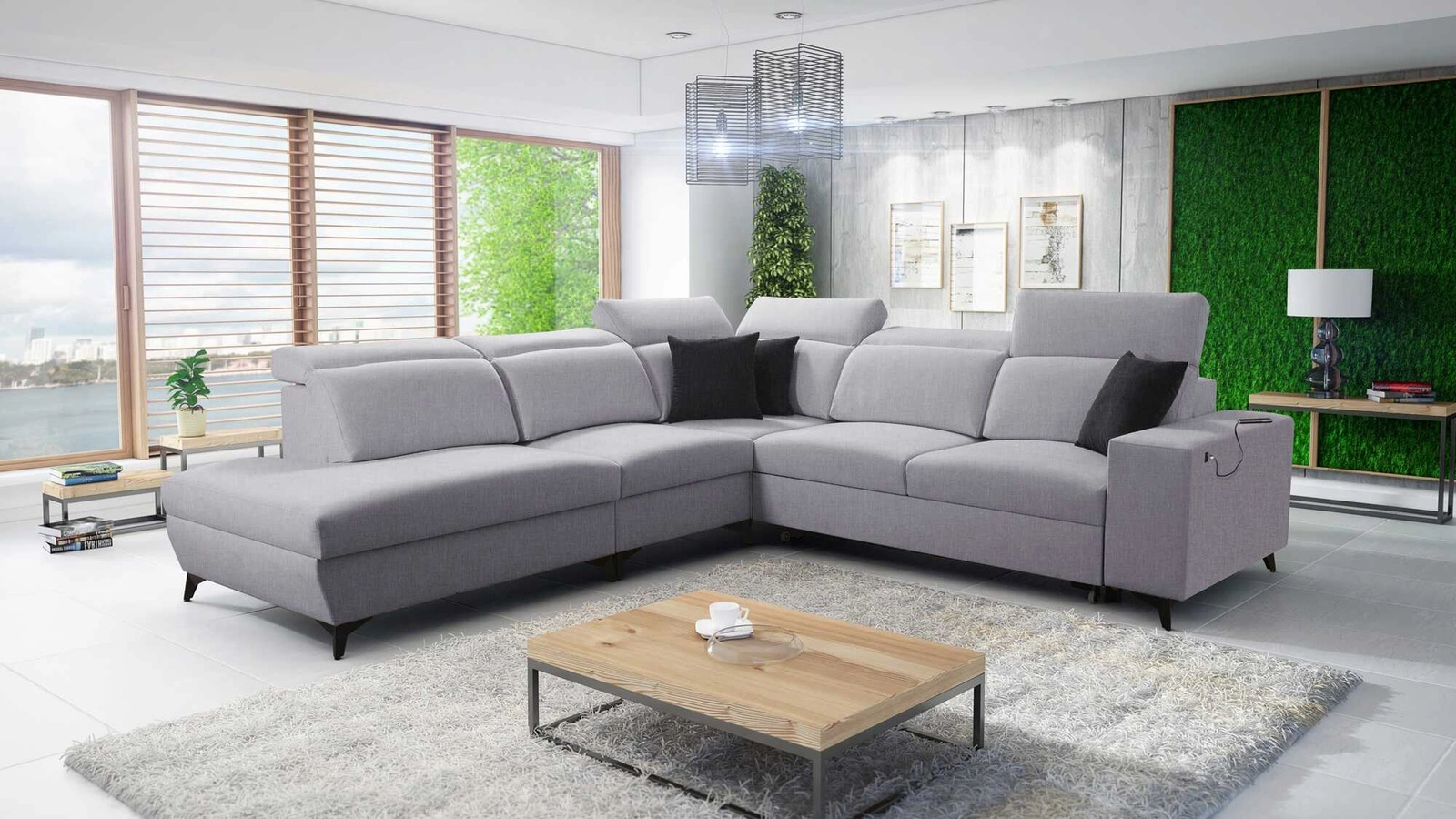 Elegantní rohová pohovka Kelly IX v šedém jasanu s nastavitelnými opěrkami hlavy je receptem na moderní interiér vašeho domova!