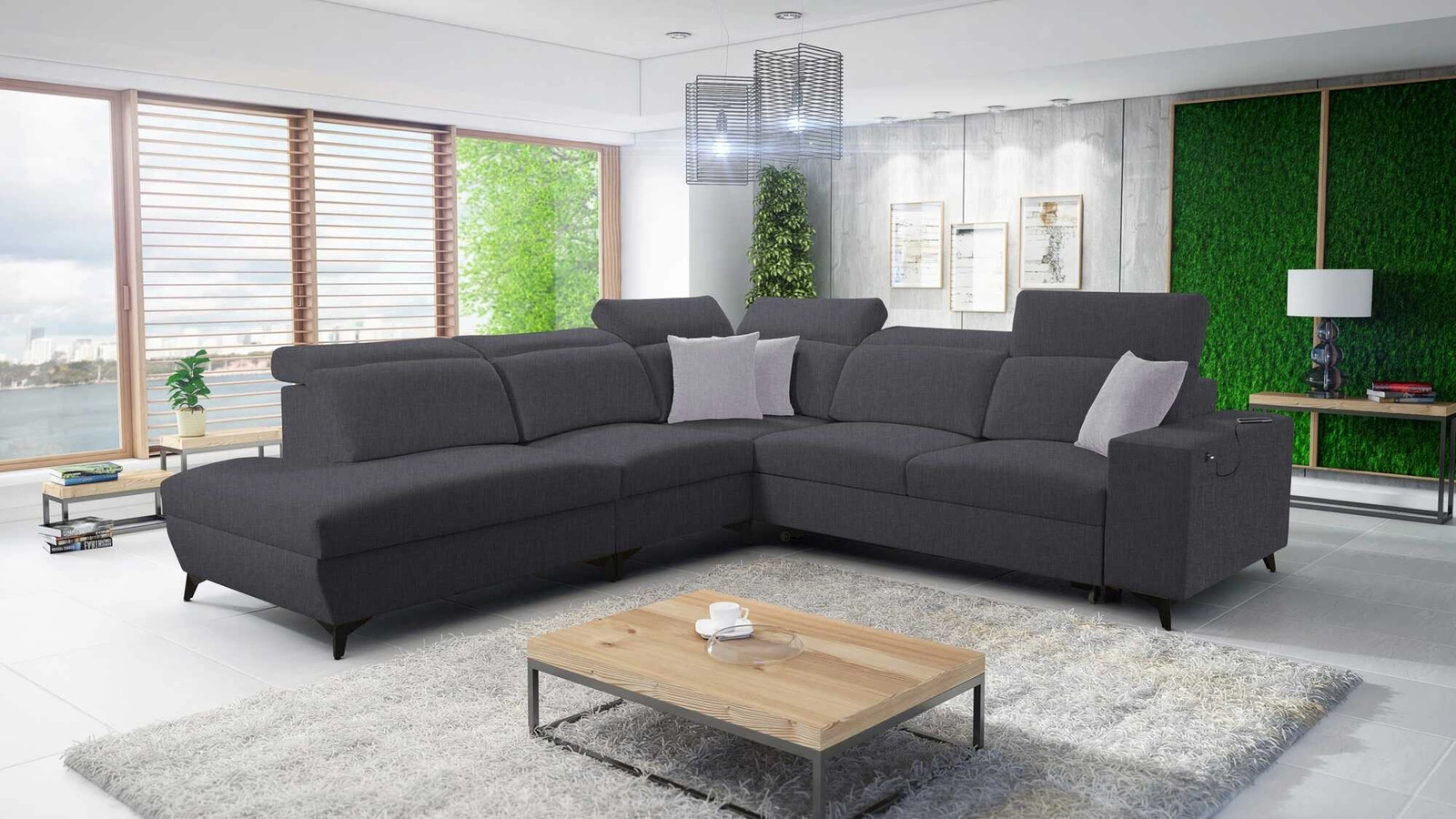 Elegantní rohová pohovka Kelly IX v grafitové barvě s nastavitelnými opěrkami hlavy je receptem na moderní interiér vašeho domova!