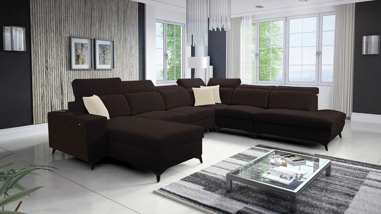 Elegantní rohová pohovka Kelly X v hnědé barvě s nastavitelnými opěrkami hlavy je receptem na moderní interiér vašeho domova.