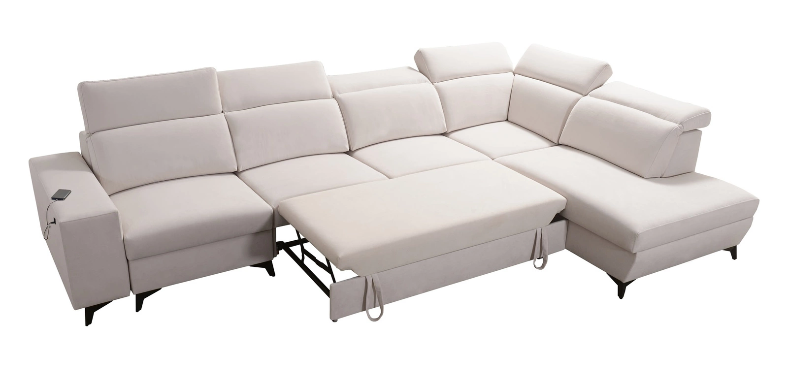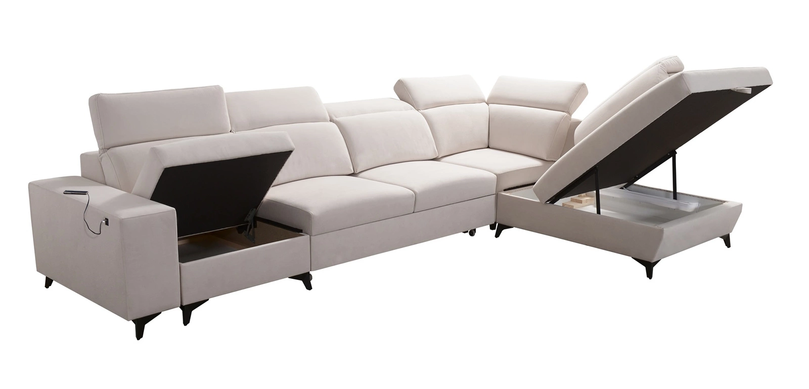 Mezi další vlastnosti tohoto nábytku, které ocení všichni uživatelé, patří kontejnery na lůžkoviny, funkce spaní, zásuvka USB v boční části rohu pro nabíjení telefonu a dalších multimediálních zařízení.