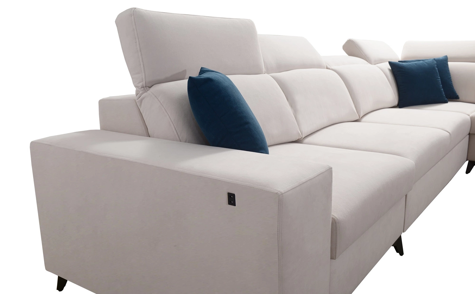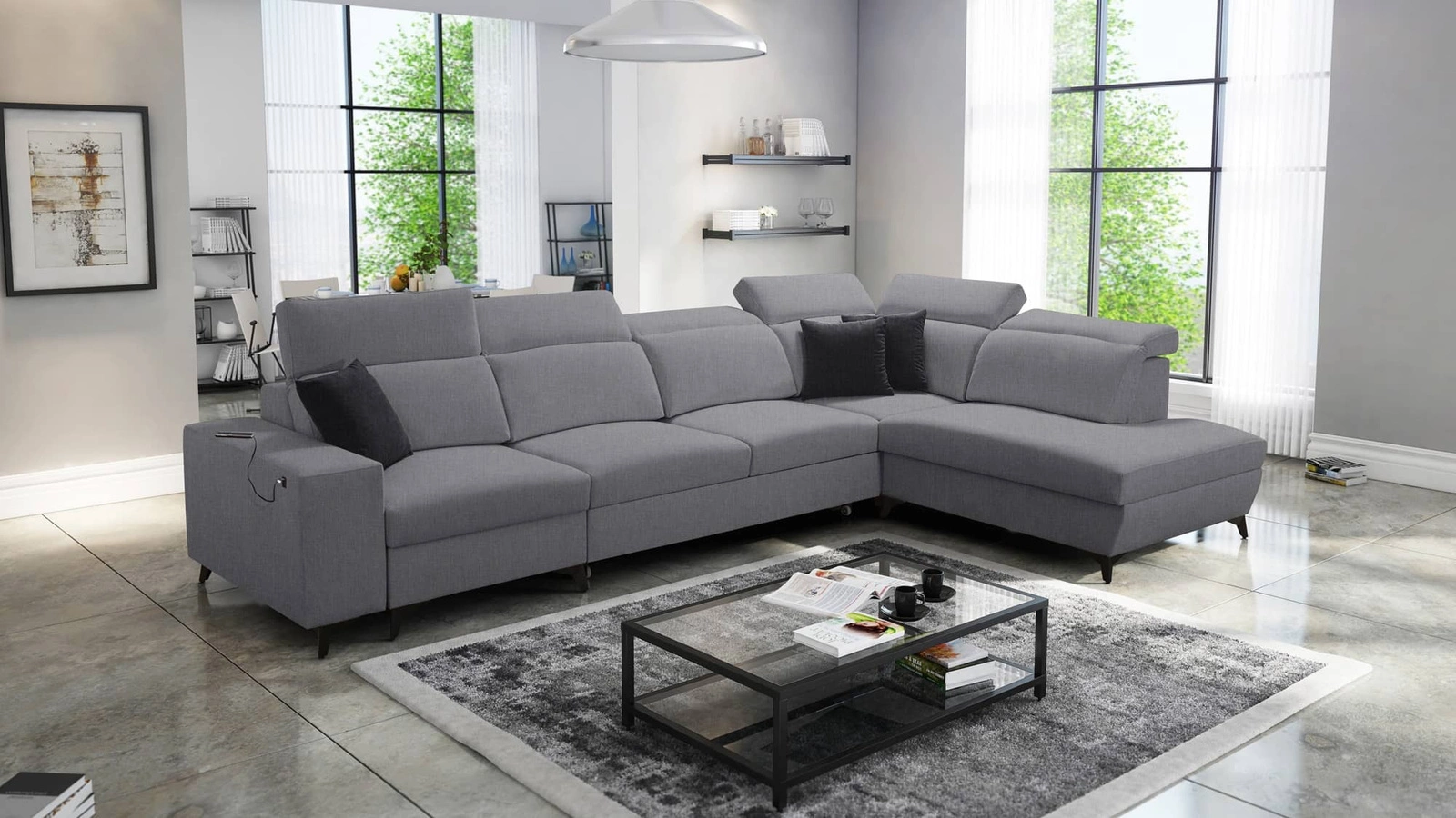 Elegantní rohová pohovka Kelly XI v šedé barvě s nastavitelnými opěrkami hlavy je receptem na moderní interiér vašeho domova!