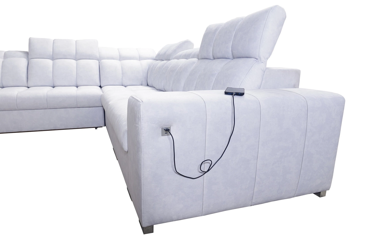 Mezi doplňky tohoto nábytku, které ocení všichni uživatelé, patří kontejnery na lůžkoviny, funkce spaní a nabíjecí zásuvka USB na boku rohové skříně.