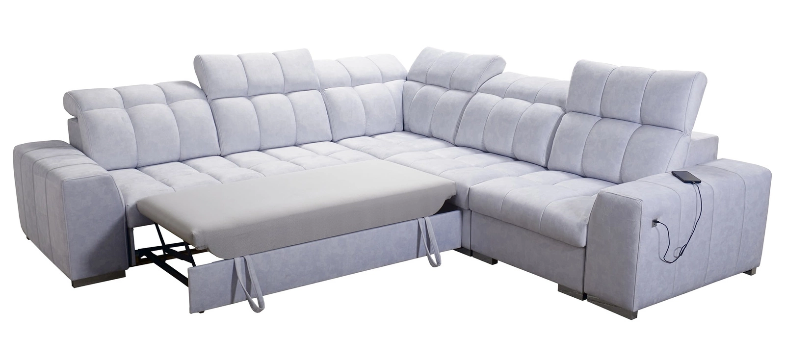 Mezi doplňky tohoto nábytku, které ocení všichni uživatelé, patří kontejnery na lůžkoviny, funkce spaní a nabíjecí zásuvka USB na boku rohové skříně.