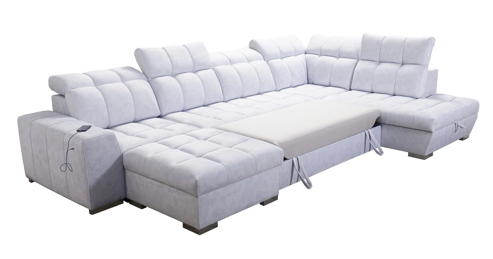 Mezi doplňky tohoto nábytku, které ocení všichni uživatelé, patří kontejnery na lůžkoviny, funkce spaní a nabíjecí zásuvka USB na boku rohové skříně.