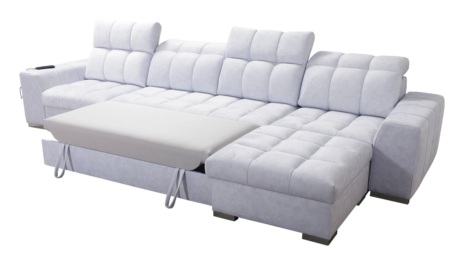 Mezi doplňky tohoto nábytku, které ocení všichni uživatelé, patří kontejnery na lůžkoviny, funkce spaní a nabíjecí zásuvka USB na boku rohové skříně.