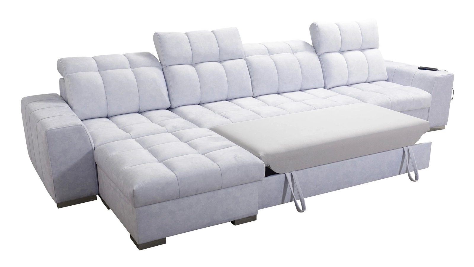 Mezi doplňky tohoto nábytku, které ocení všichni uživatelé, patří kontejnery na lůžkoviny, funkce spaní a nabíjecí zásuvka USB na boku rohové skříně.