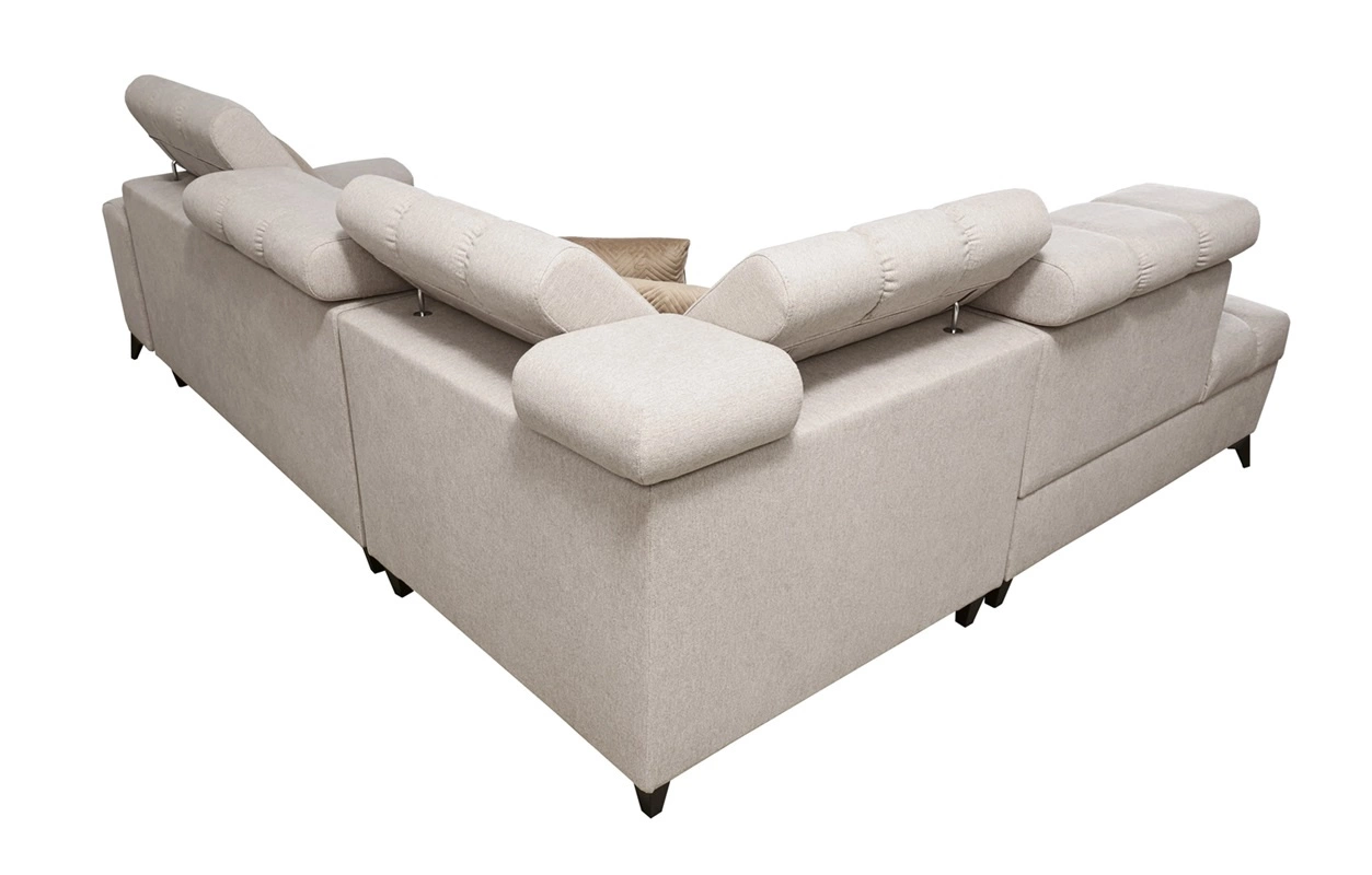 Rozměry nábytku umožňují vyplnění prostoru v prostorném obývacím pokoji nebo zasedací místnosti. Šířka rohu 280 cm, maximální výška 100 cm a hloubka 217 cm. Spací plocha rohové jednotky je 127x210 cm. Výška sedadla nábytku je 45 cm a maximální výška opěradla je 60 cm. Vlnité pružiny a polyuretanová pěna T30 je materiál, z něhož je vyrobeno sedadlo rohové jednotky. Zálohování s nastavitelnými opěrkami hlavy vám umožní snadno nastavit úhel opěrek hlavy podle vašich preferencí a zaručí pohodlný odpočinek po dlouhém dni, který oceníte vy, vaši blízcí i hosté, kteří si na tuto jedinečnou rohovou sedačku sednou.