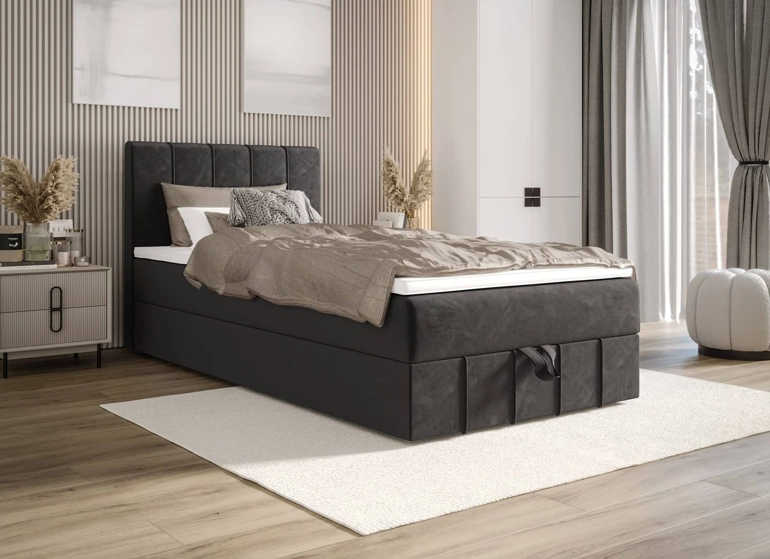 Kontinentální postel Casey 90x200 v šedé barvě je ideální volbou do každé ložnice nebo pokoje pro mládež.