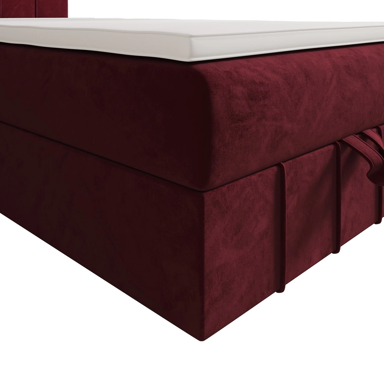Vínová kontinentální postel Casey 100x200 v moderním skandinávském stylu s čalouněným čelem postele s úložným boxem