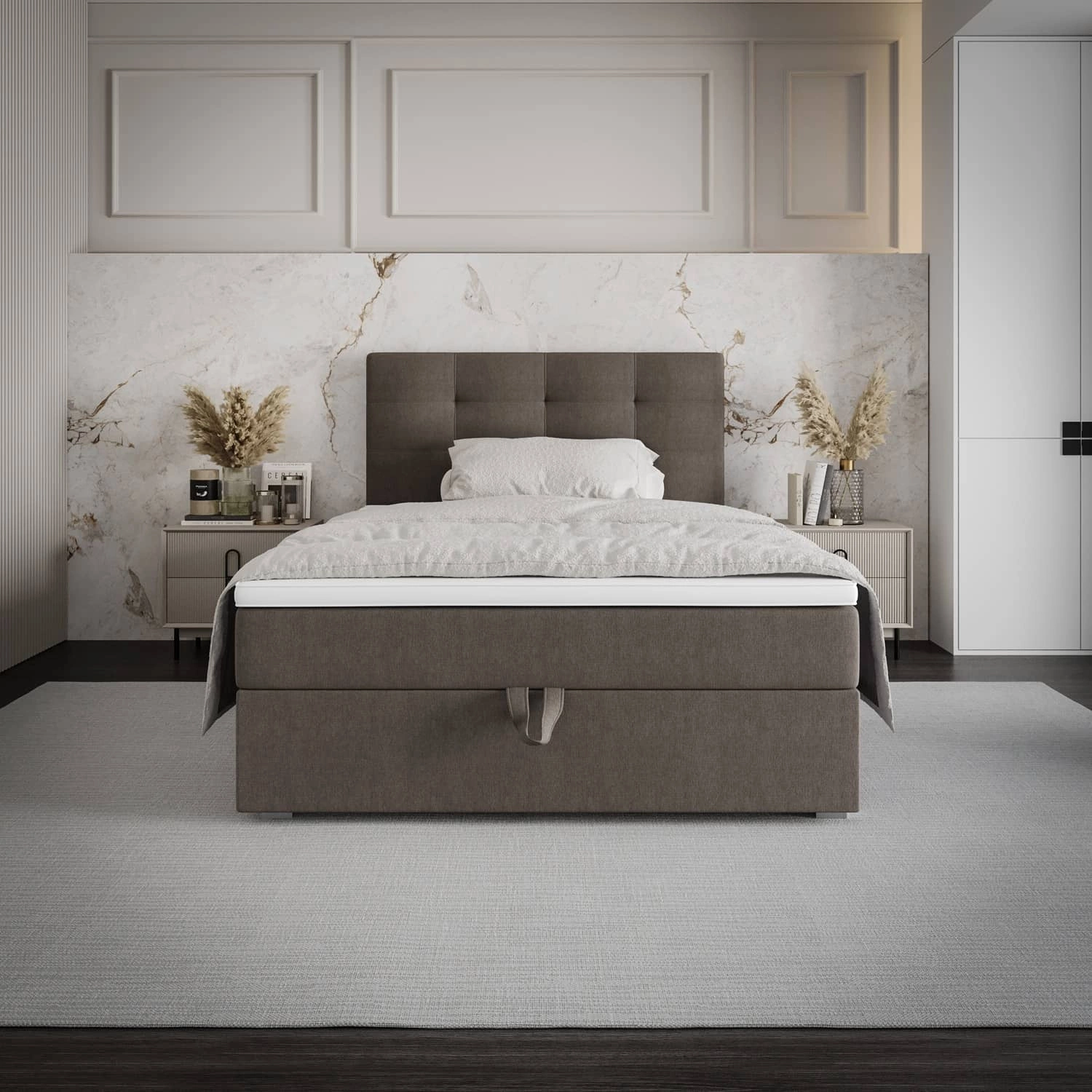 Kontinentální postel Flint 120x200 ve světle hnědé barvě je ideální volbou do každé ložnice nebo pokoje pro mládež.