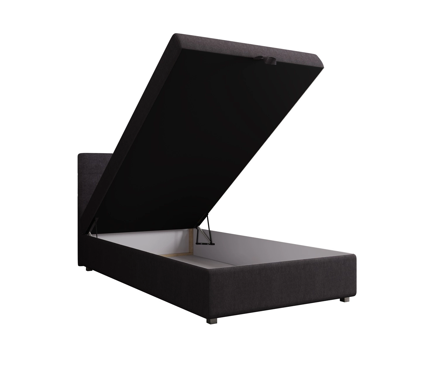 Kontinentální postel Flint 100x200 grafit v moderním skandinávském stylu s čalouněným čelem postele s úložným boxem