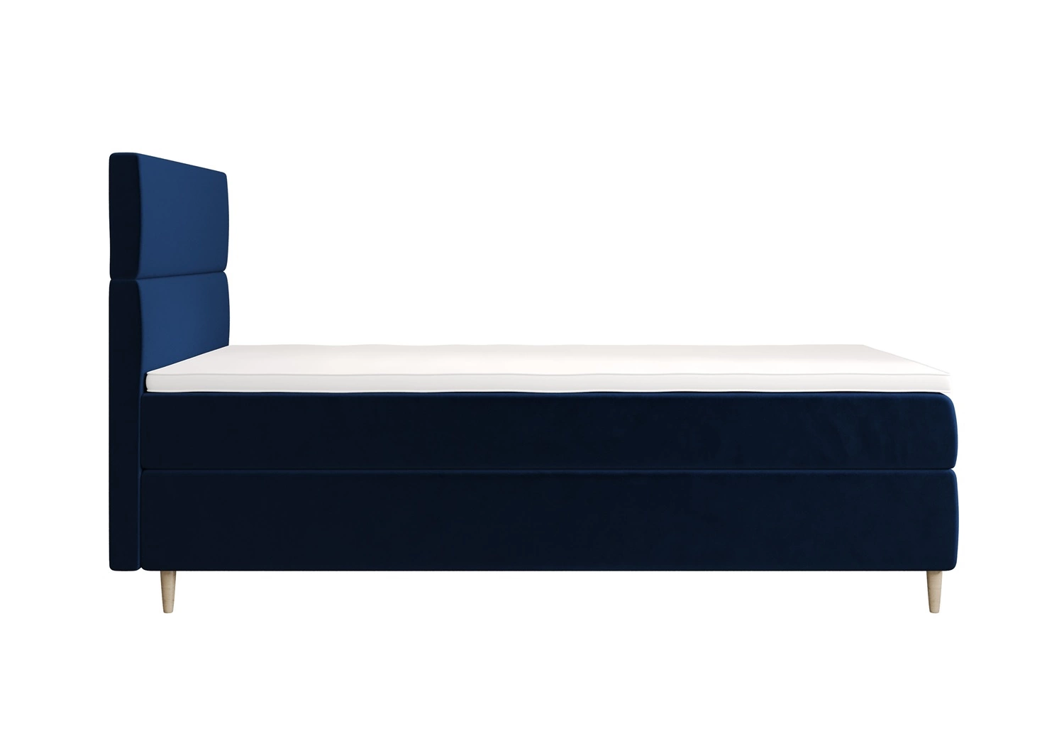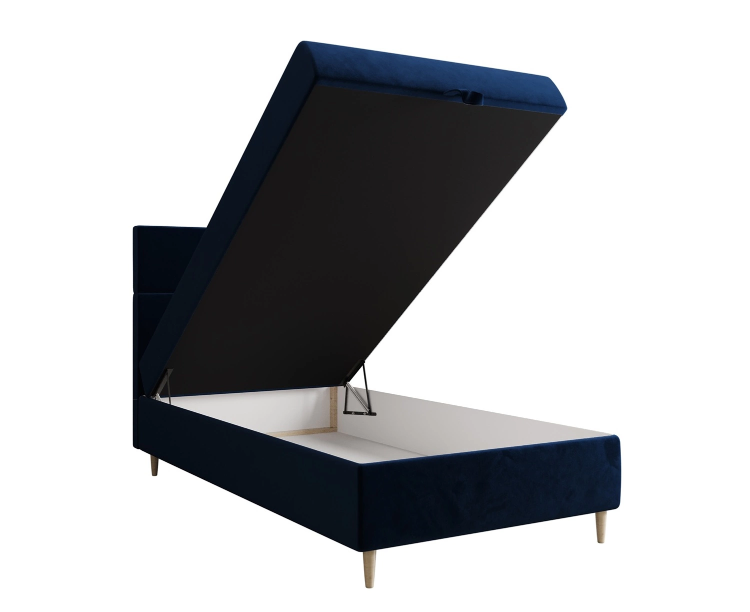 Kontinentální postel Bing 90x200 tmavě modrá v moderním skandinávském stylu s čalouněným čelem postele s úložným boxem