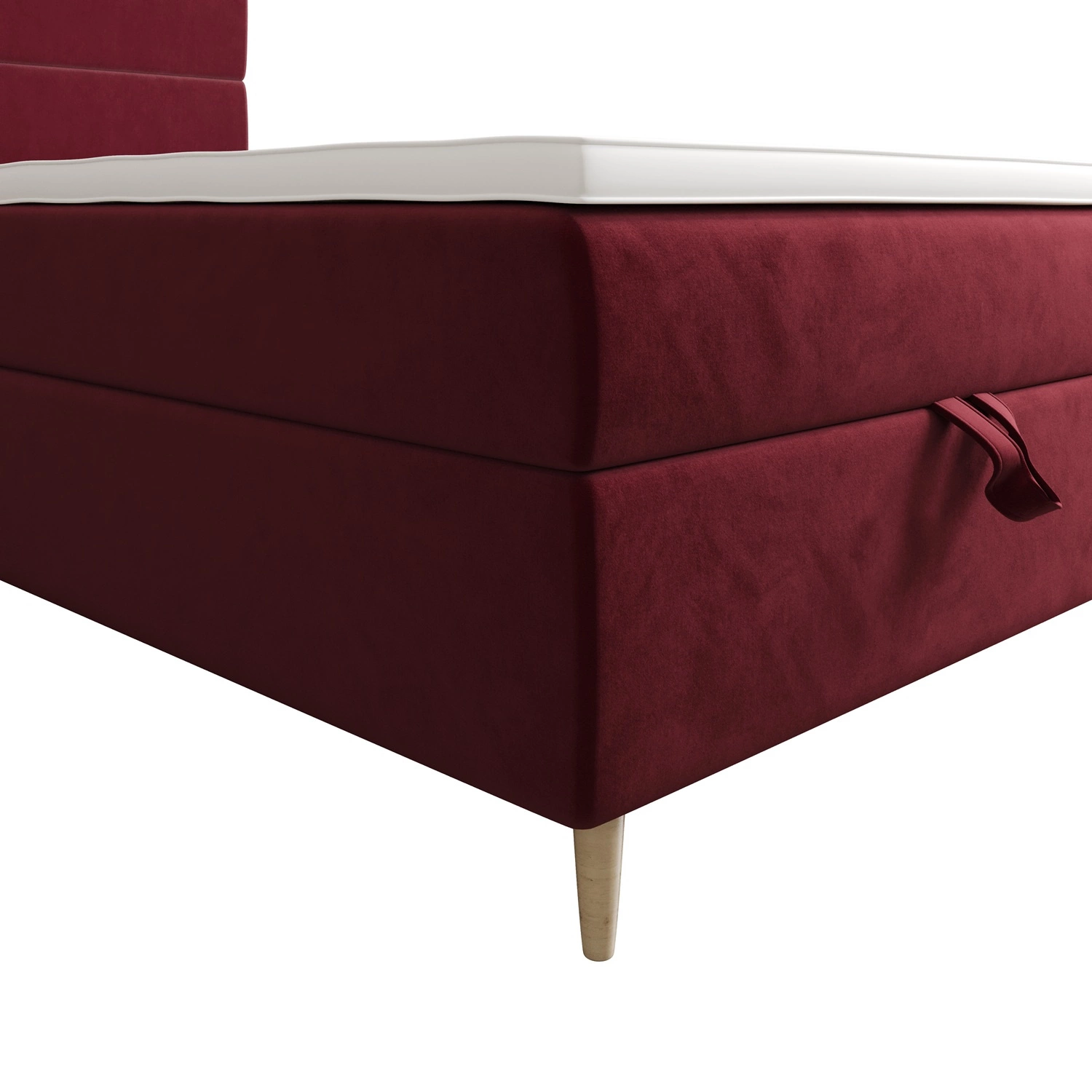 Kontinentální postel Bing 90x200 vínová v moderním skandinávském stylu s čalouněným čelem postele s úložným boxem
