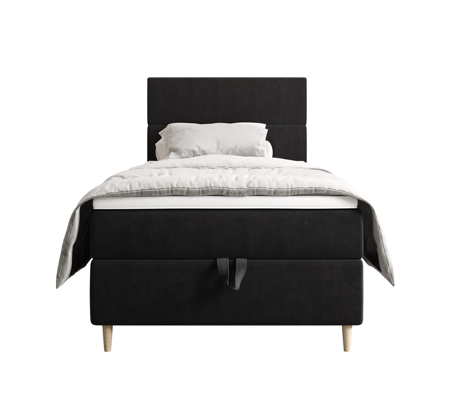 Kontinentální postel Bing 100x200 grafit v moderním skandinávském stylu s čalouněným čelem postele s úložným boxem