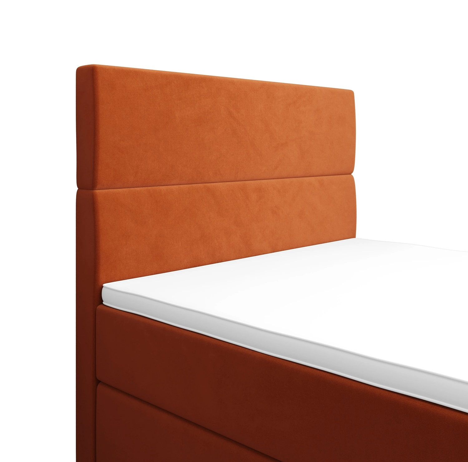Kontinentální postel Benet 100x200 v cihlově červené barvě je ideální volbou do každé ložnice nebo pokoje pro mládež.