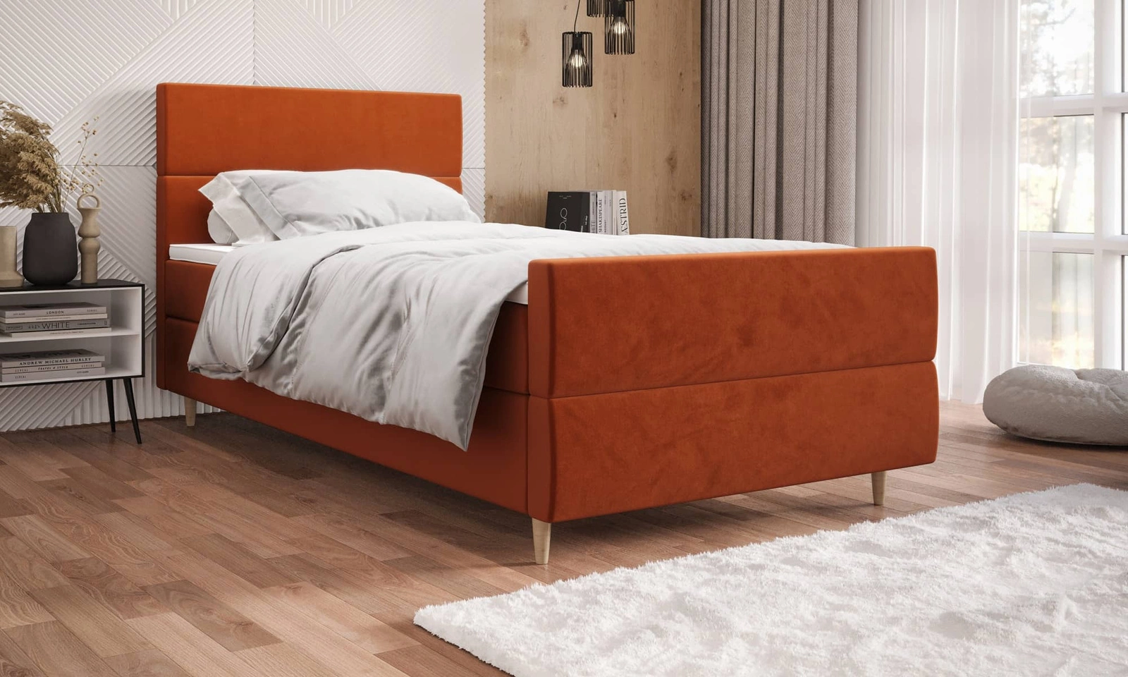 Kontinentální postel Benet 120x200 v cihlově červené barvě je ideální volbou do každé ložnice nebo pokoje pro mládež.