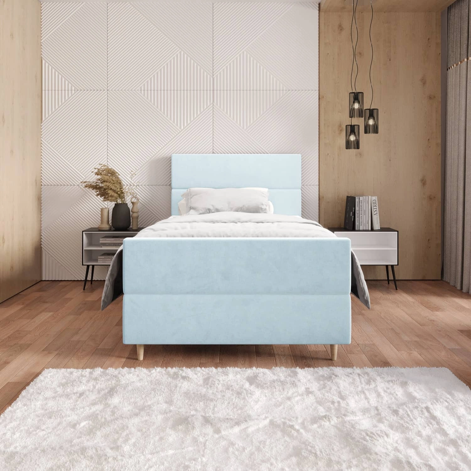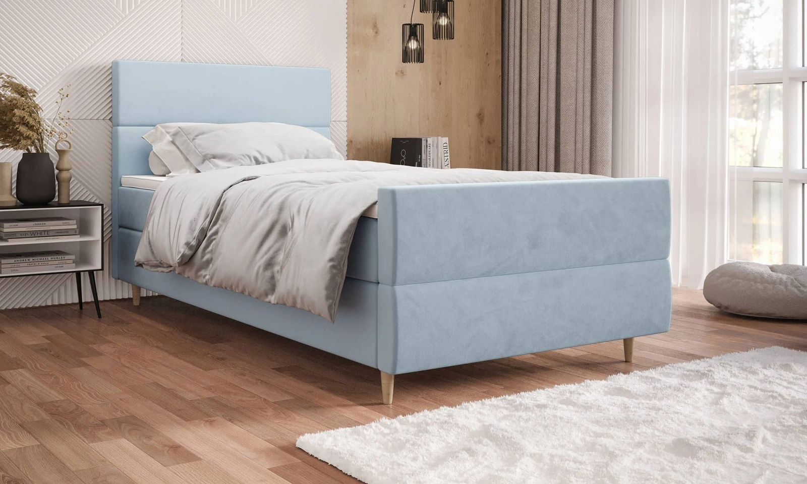 Kontinentální postel Benet 90x200 v modré barvě je ideální volbou do každé ložnice nebo pokoje pro mládež.