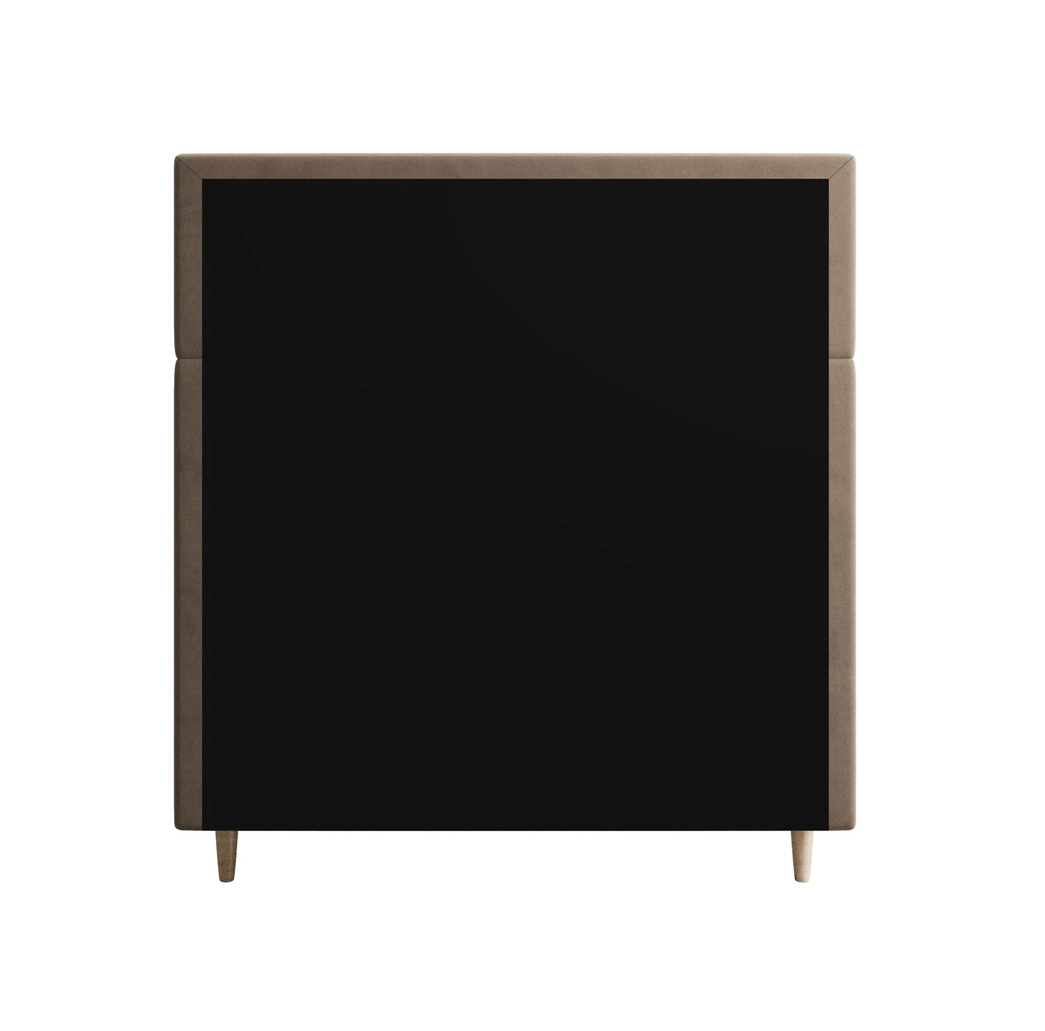 Kontinentální postel Benet 90x200 světle hnědá v moderním skandinávském stylu s čalouněným čelem a nohou postele s úložným boxem