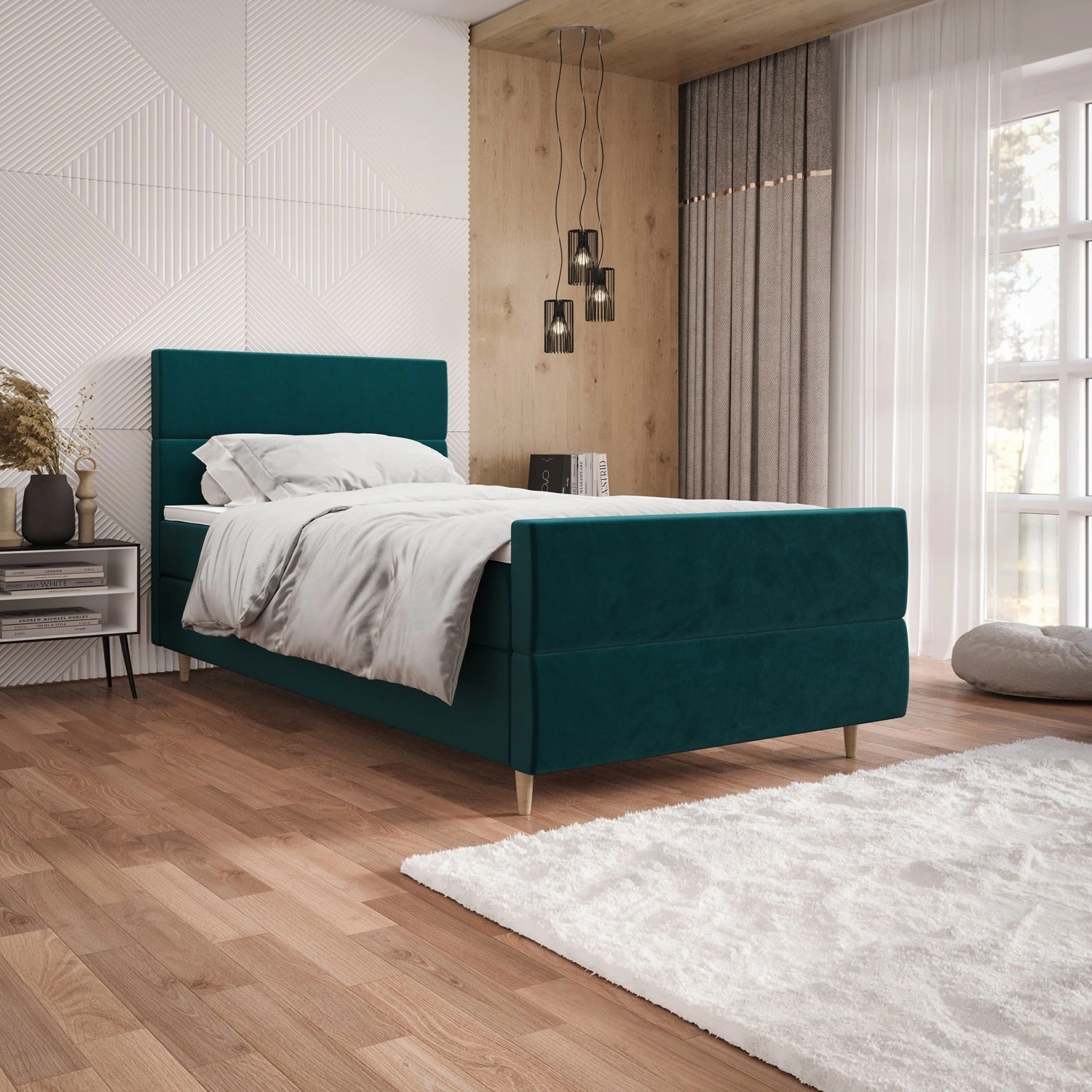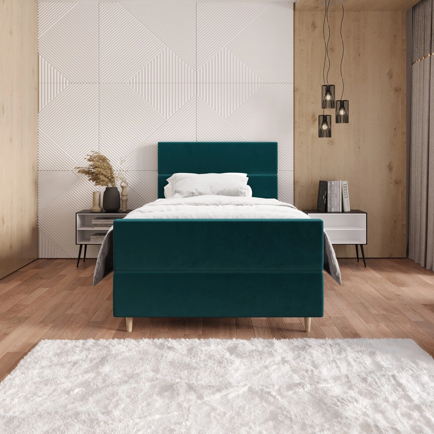 Kontinentální postel Benet 120x200 v tyrkysové barvě je ideální volbou do každé ložnice nebo pokoje pro mládež.