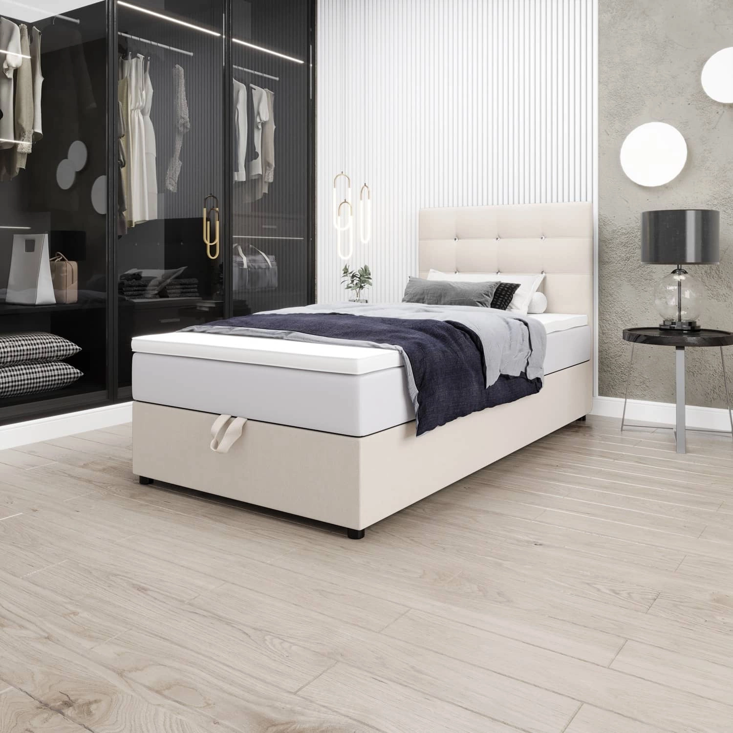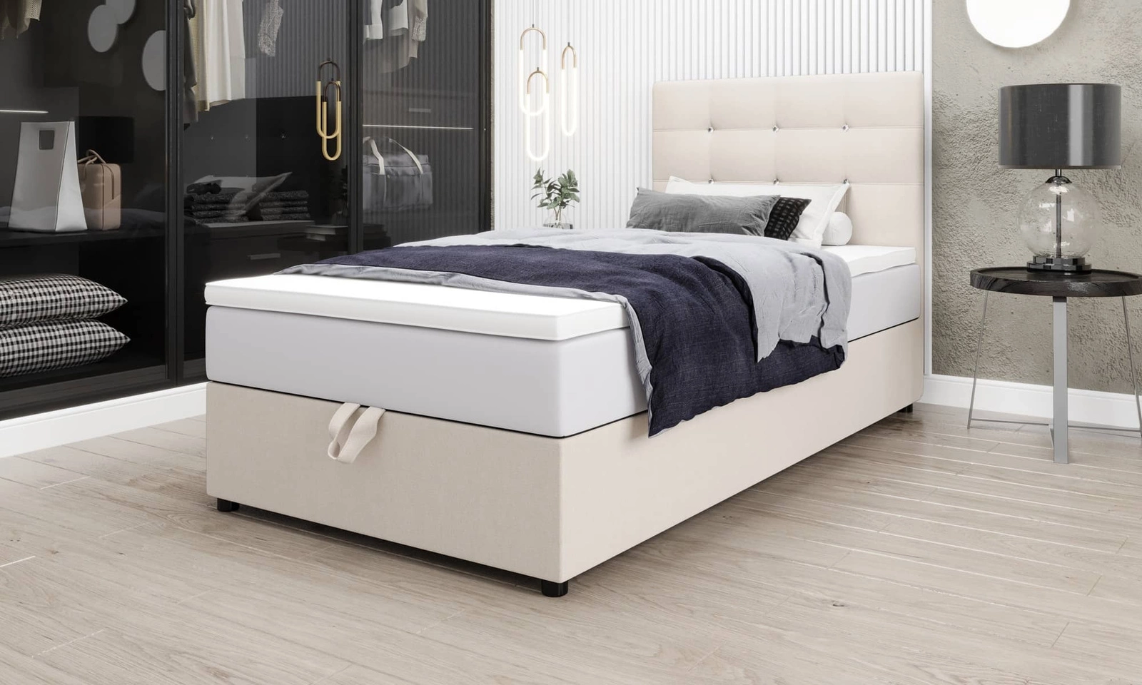 Kontinentální postel Kingston 100x200 v béžové barvě je ideální volbou do každé ložnice nebo pokoje pro mládež.
