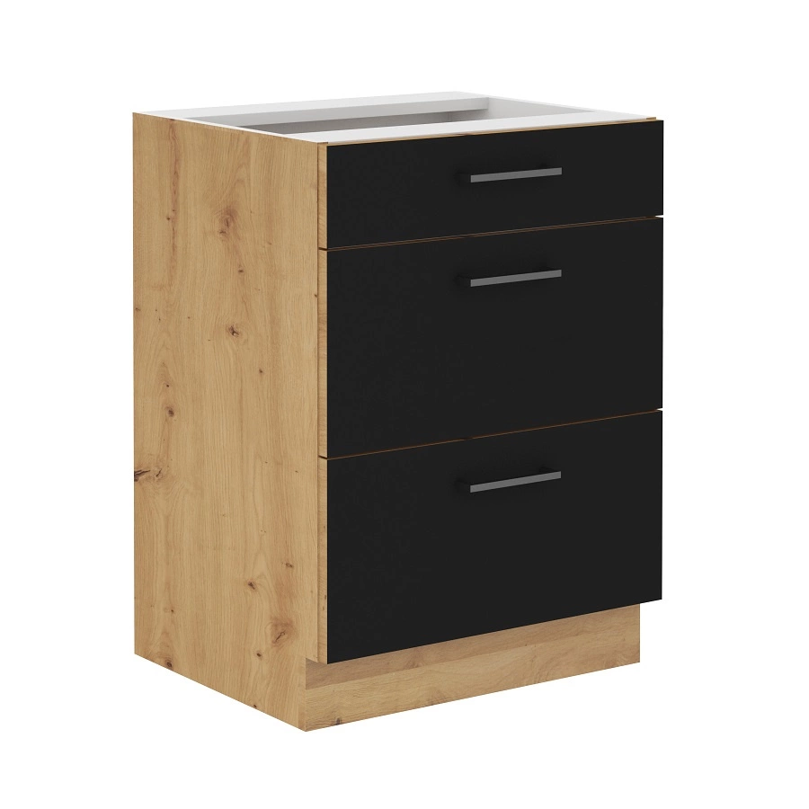 Kuchyňská skříňka se zásuvkami Monza v barvě grafitově šedá / dub artisan patří do kategorie modulového kuchyňského nábytku, ze kterého vytvoříte libovolné sestavy.