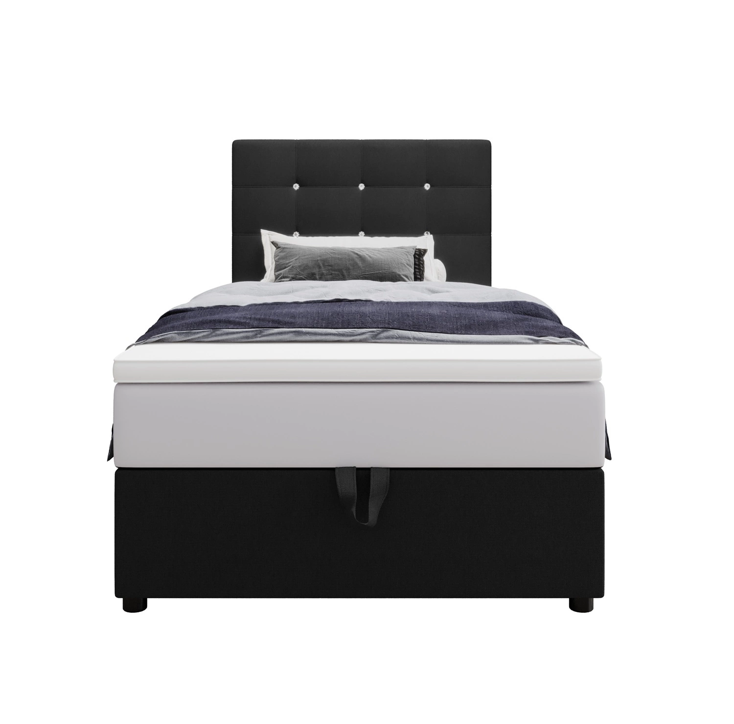 Černá kontinentální postel Kingston 90x200 v moderním skandinávském stylu s čalouněným podhlavníkem s krystaly Postel s úložným boxem
