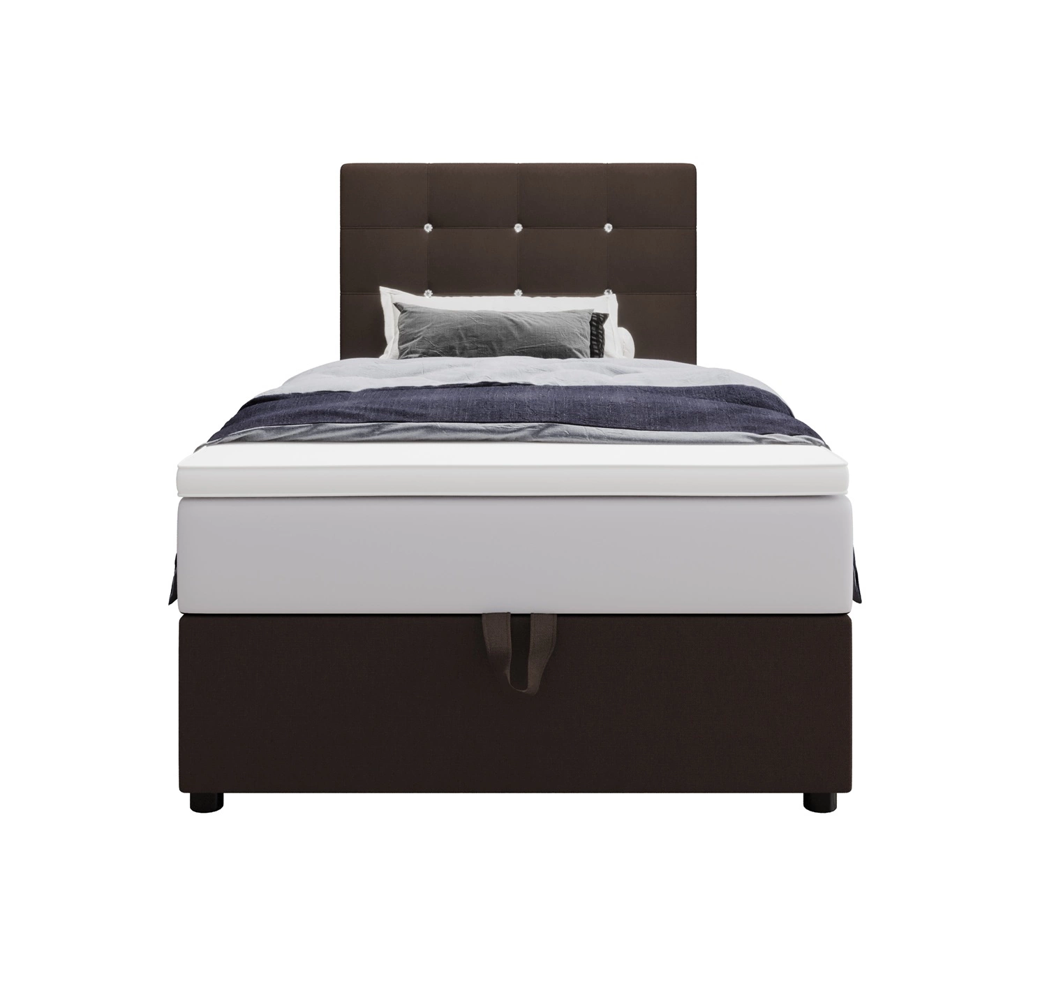 Hnědá kontinentální postel Kingston 90x200 v moderním skandinávském stylu s čalouněným čelem s krystaly postel s úložným boxem