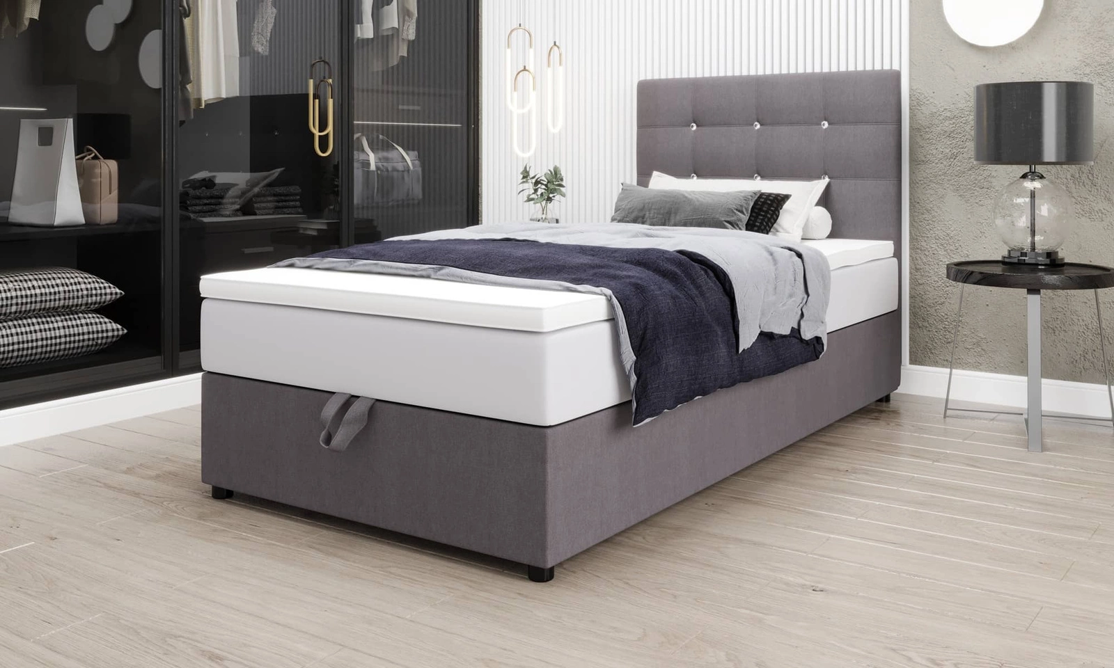 Kontinentální postel Kingston 120x200 v šedé barvě je ideální volbou do každé ložnice nebo pokoje pro mládež.