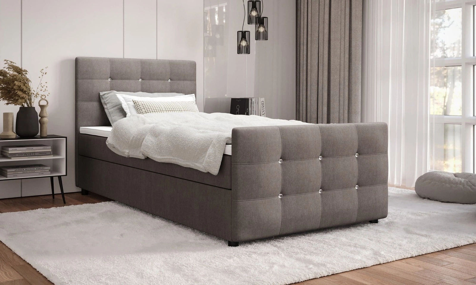 • Kontinentální postel Kansas je ideální volbou do pokoje pro mladé nebo menší ložnice. Konstrukce lůžka zajišťuje velkou stabilitu a pohodlí při používání. Poutavým prvkem je prošívání na opěrce hlavy a nohou zakončené krystaly.