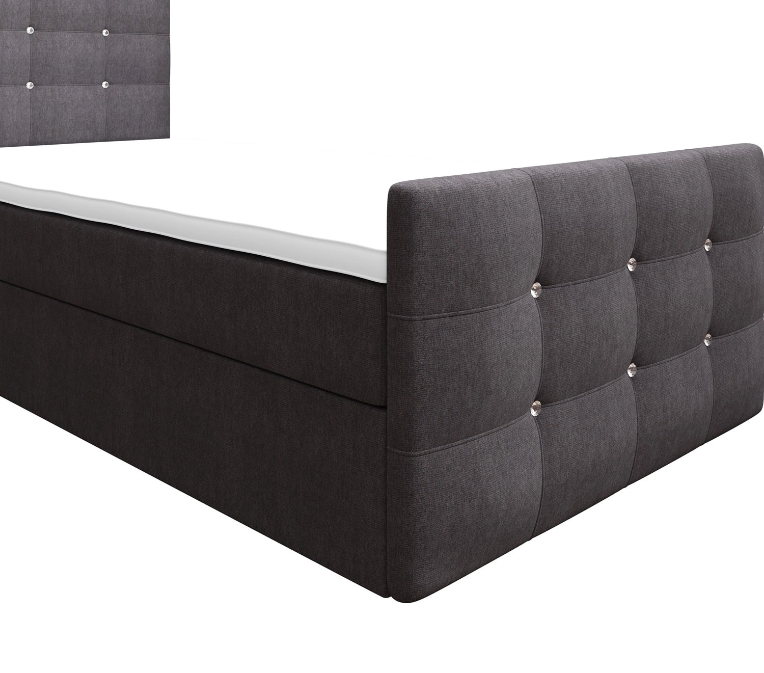 - Kontinentální postel Kansas je ideální volbou do pokoje pro mladé nebo menší ložnice. Konstrukce lůžka zajišťuje velkou stabilitu a pohodlí při používání. Poutavým prvkem je prošívání na opěrce hlavy a nohou zakončené krystaly.