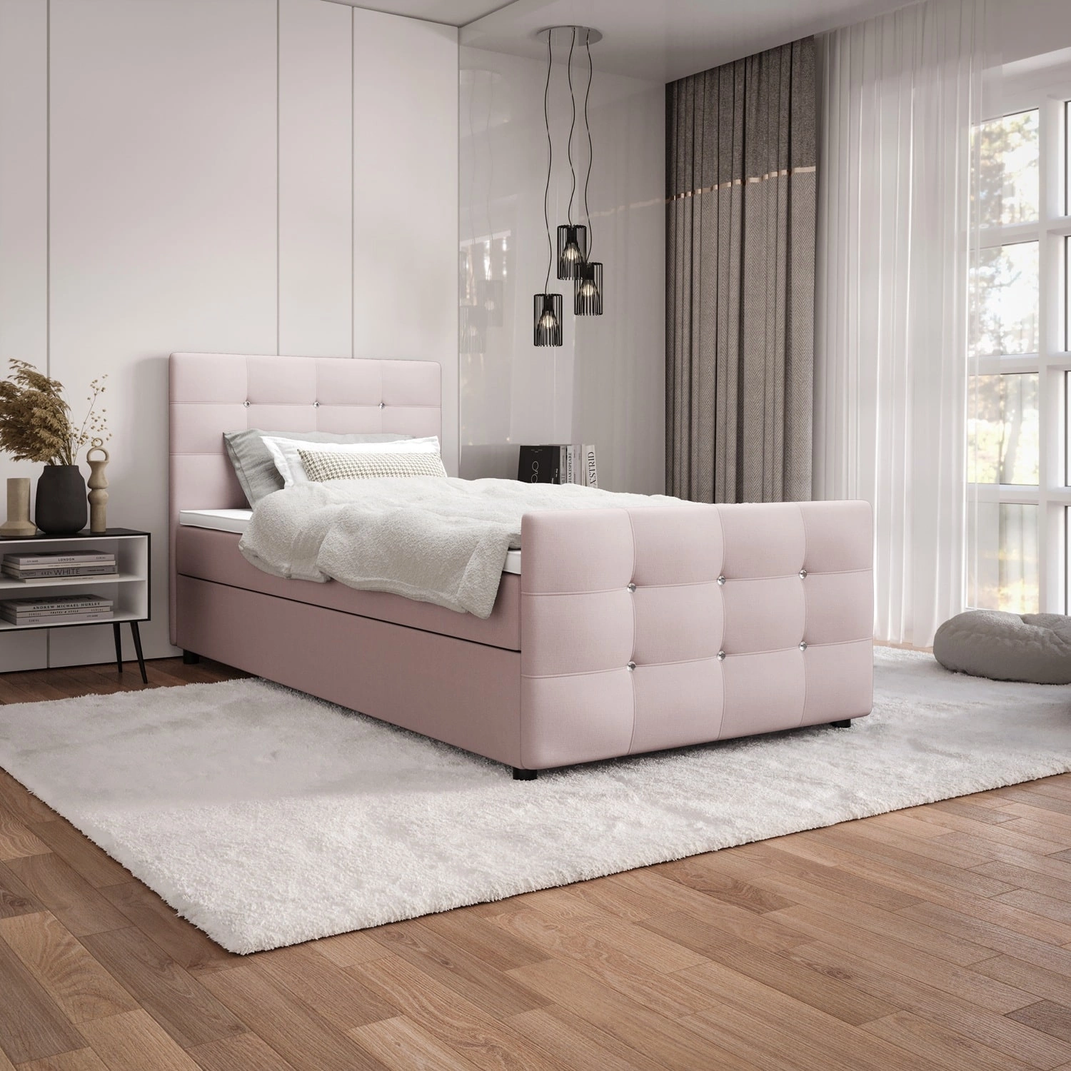 Kontinentální postel Kansas 100x200 v pudrově růžové barvě je ideální volbou do každé ložnice nebo pokoje pro mládež.