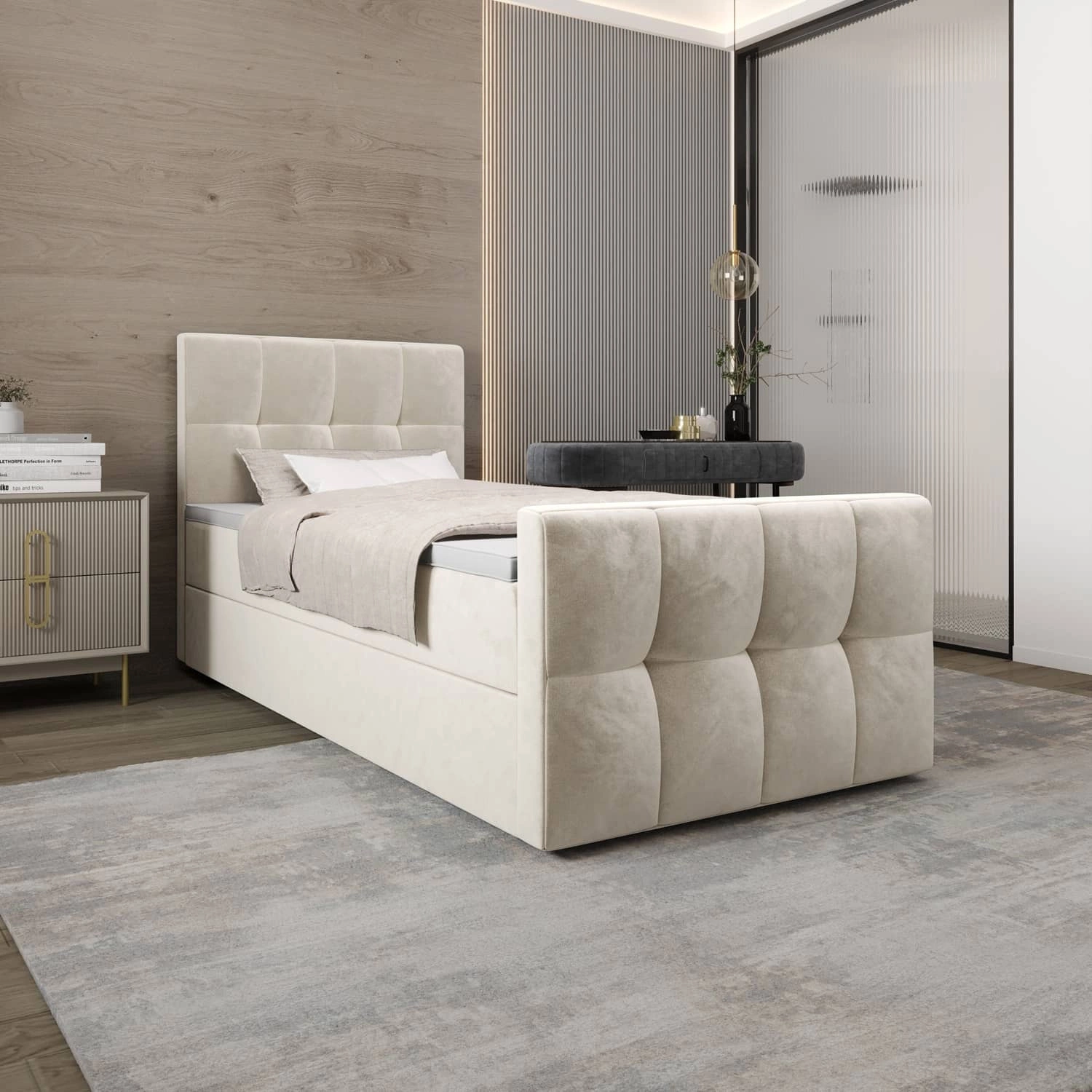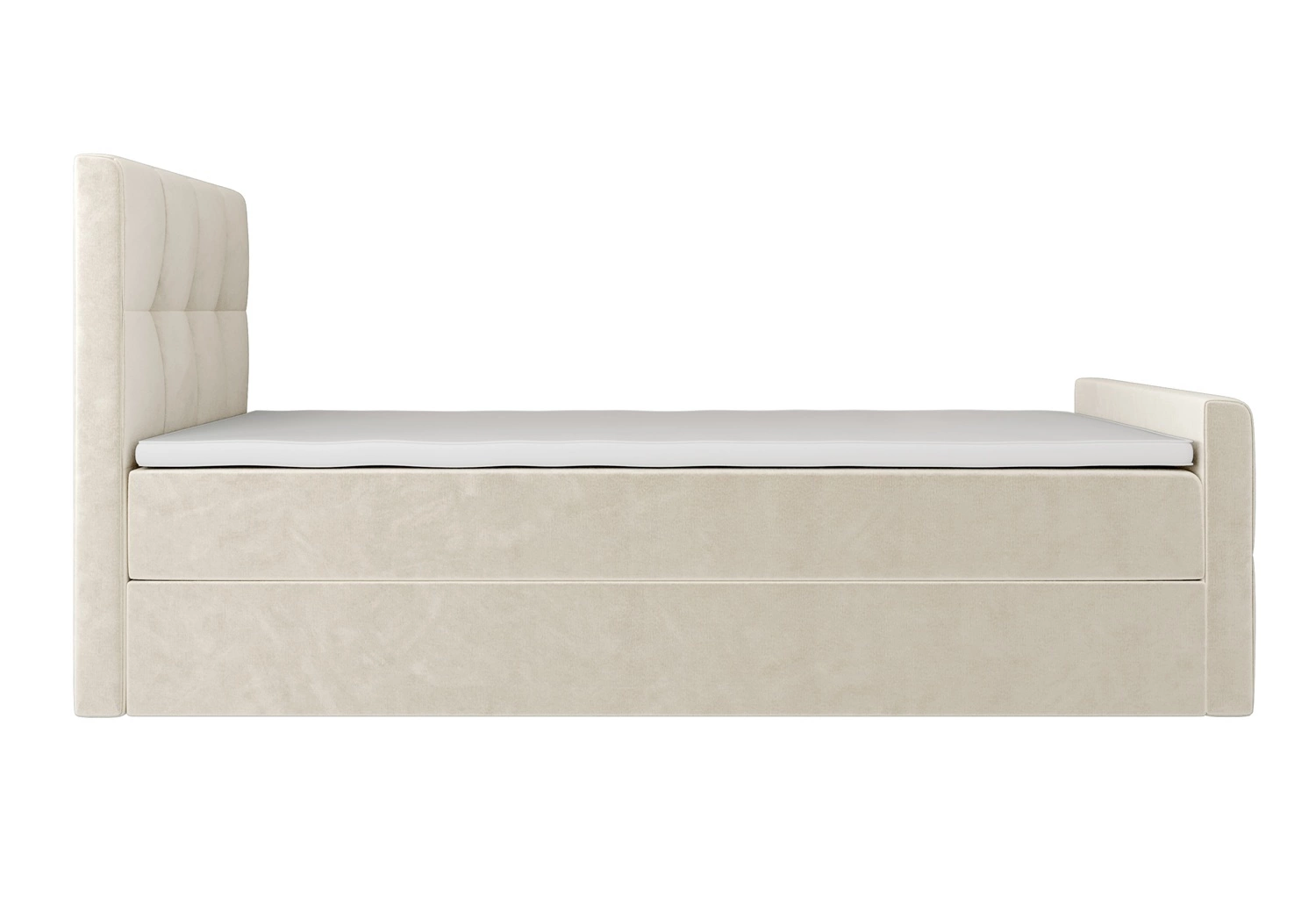 Kontinentální postel Manhattan 120x200 béžová v moderním skandinávském stylu s čalouněným čelem a nohou postele s úložným boxem