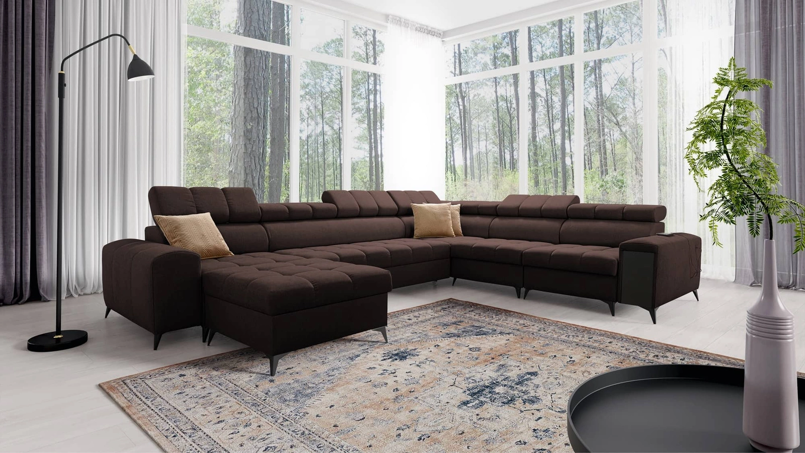 Rohová pohovka Bolmso VIII v hnědé barvě s nastavitelnými opěrkami hlavy je nádherný kus nábytku se zárukou nejvyššího pohodlí a funkčnosti.