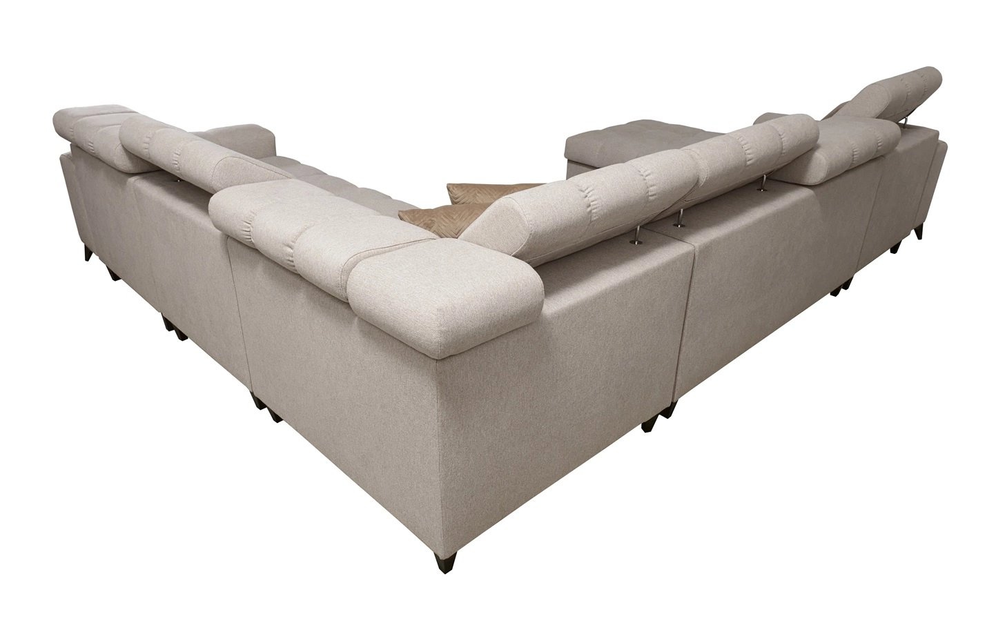 Rozměry nábytku umožňují vyplnění prostoru v prostorném obývacím pokoji nebo zasedací místnosti. Šířka rohu 359 cm, maximální výška 100 cm a hloubka 276 cm. Spací plocha rohové jednotky je 127x284 cm. Výška sedadla nábytku je 45 cm a maximální výška opěradla je 60 cm. Vlnité pružiny a polyuretanová pěna T30 je materiál, z něhož je vyrobeno sedadlo rohu. Zálohování s nastavitelnými opěrkami hlavy vám umožní snadno nastavit úhel opěrek hlavy podle vašich preferencí a zaručí pohodlný odpočinek po dlouhém dni, který oceníte vy, vaši blízcí i hosté, kteří si na tuto jedinečnou rohovou sedačku sednou.
