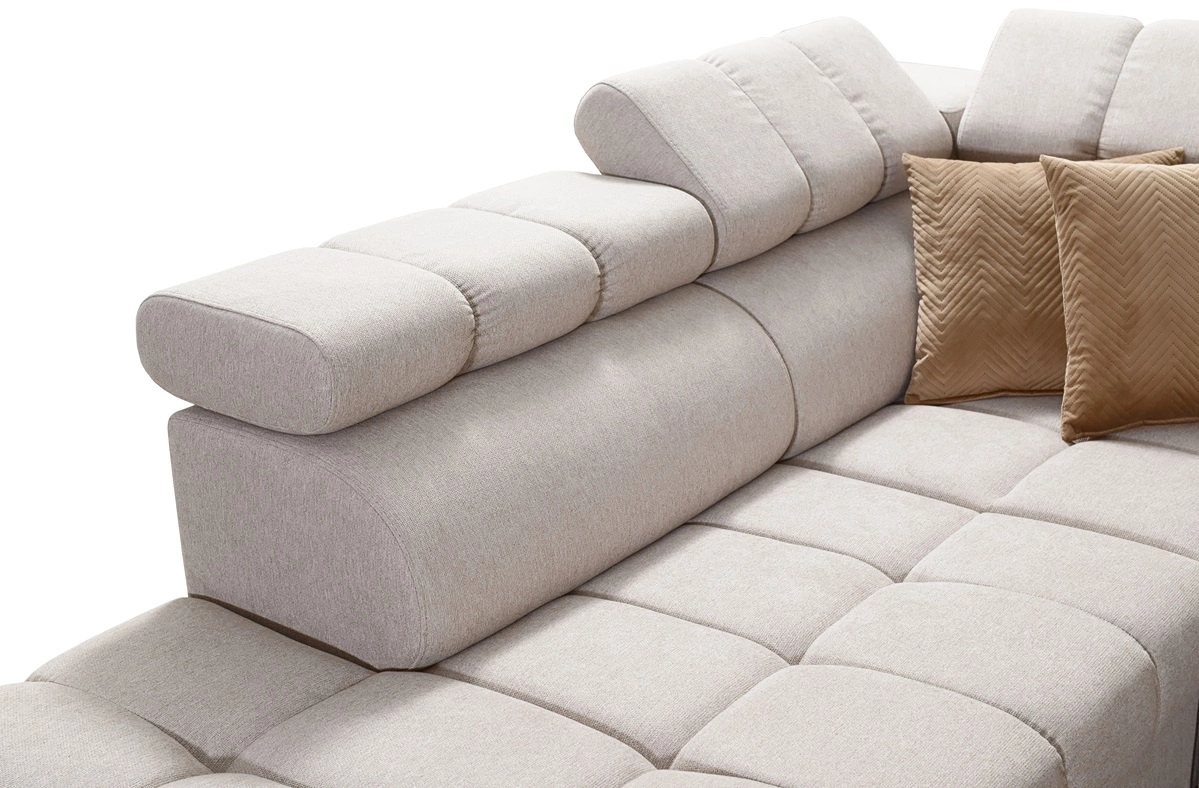 Rozměry nábytku umožňují vyplnění prostoru v prostorném obývacím pokoji nebo zasedací místnosti. Šířka rohu 280 cm, maximální výška 100 cm a hloubka 294 cm. Spací plocha rohové jednotky je 127x210 cm. Výška sedadla nábytku je 45 cm a maximální výška opěradla je 60 cm. Vlnité pružiny a polyuretanová pěna T30 je materiál, z něhož je vyrobeno sedadlo rohu. Zálohování s nastavitelnými opěrkami hlavy vám umožní snadno nastavit úhel opěrek hlavy podle vašich preferencí a zaručí pohodlný odpočinek po dlouhém dni, který oceníte vy, vaši blízcí i hosté, kteří si na tuto jedinečnou rohovou sedačku sednou.