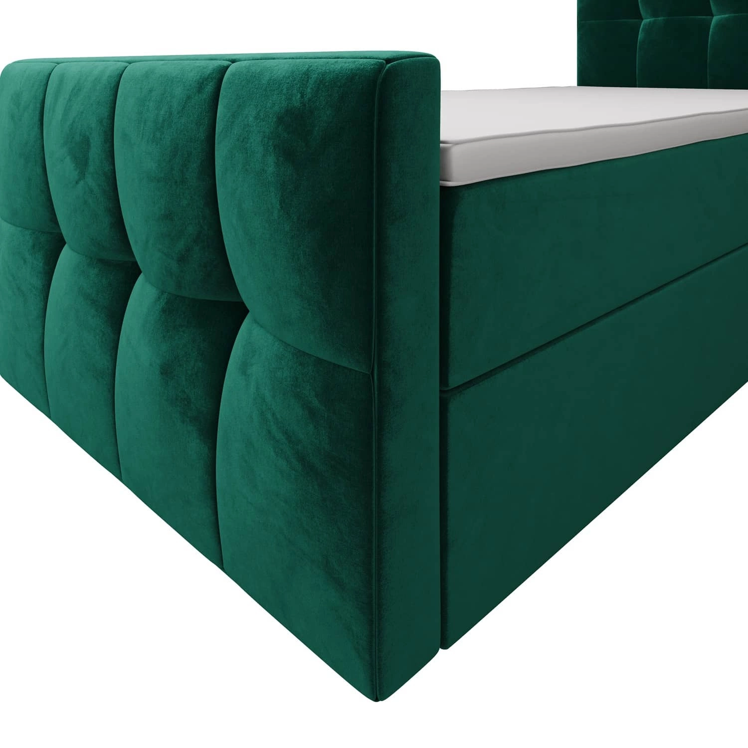 Kontinentální postel Manhattan 90x200 v lahvově zelené barvě je ideální volbou do každé ložnice nebo pokoje pro mládež.