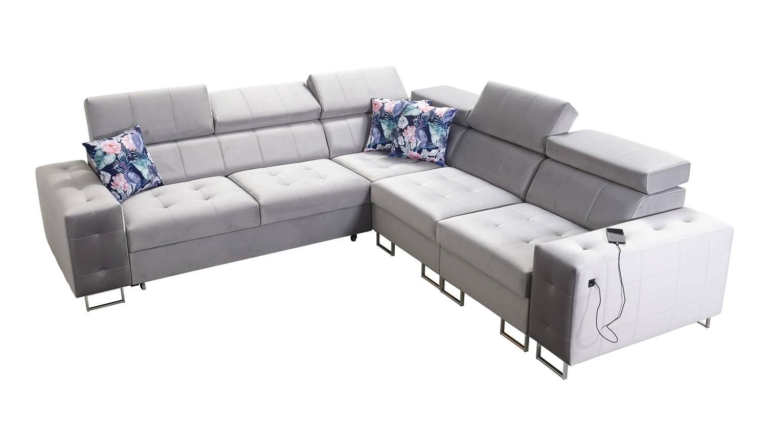 Podrobnosti o moderní rohové pohovce s funkcí spaní Hampton III
